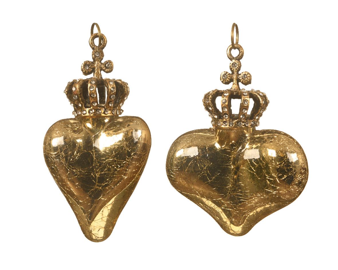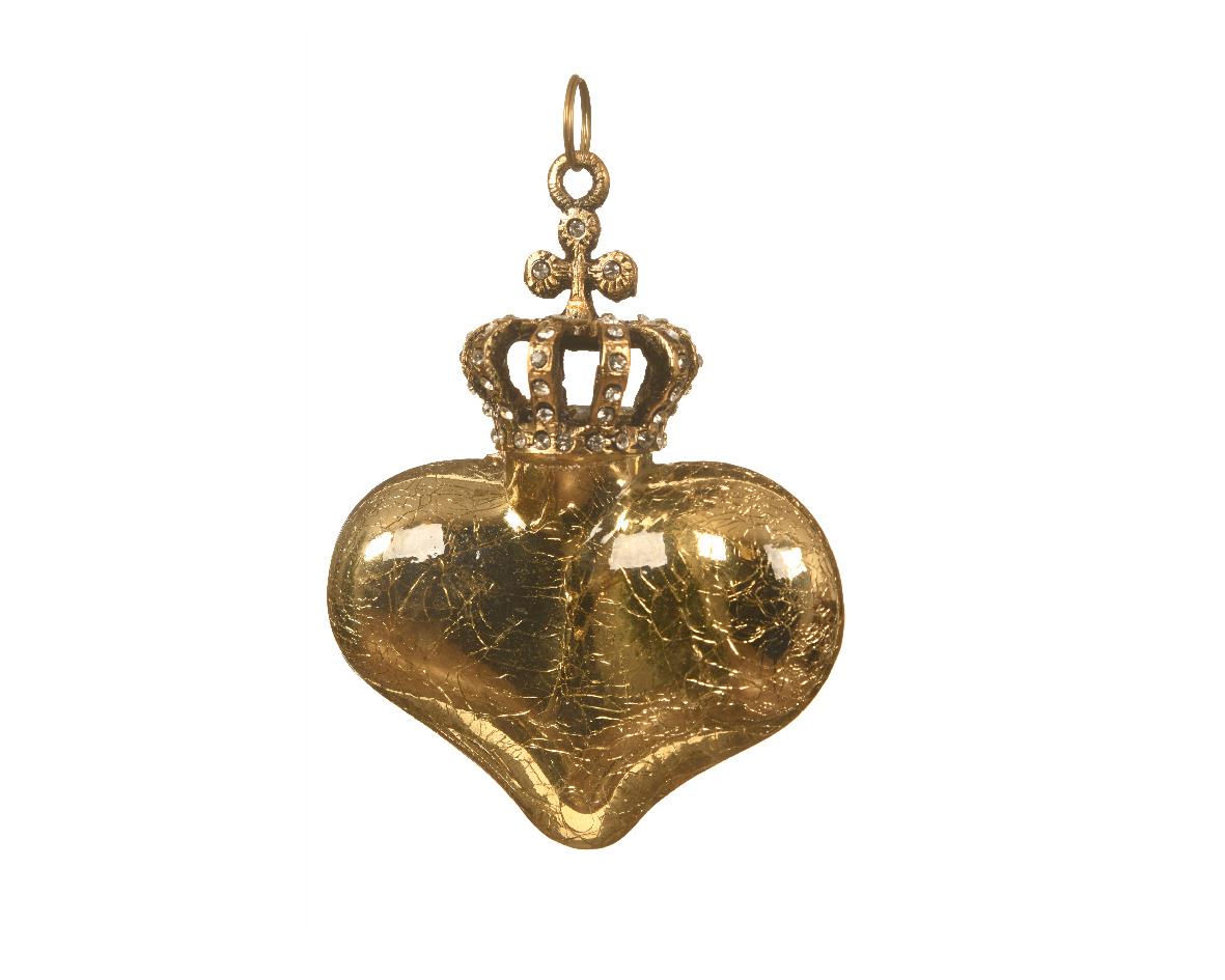 CHRISTMAS GLASS BAUBLE GOLD HEART WITH CROWN - KAEMINGK Glass 5*5*H9.5