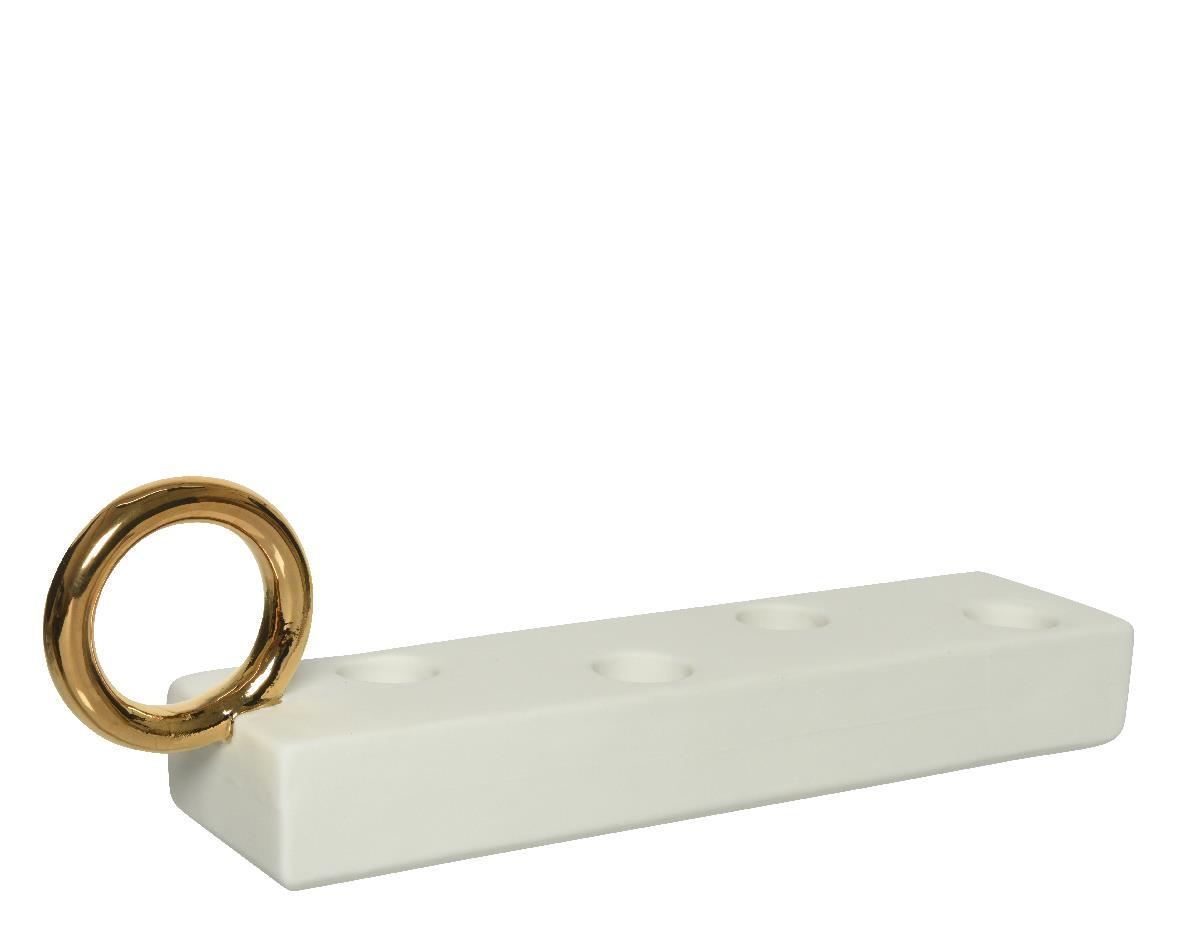 CANDLEHOLDER PORCELAIN WHITE WITH GOLDEN METALLIC DESIGN - KAEMINGK Porcelain 6*29*H8.5