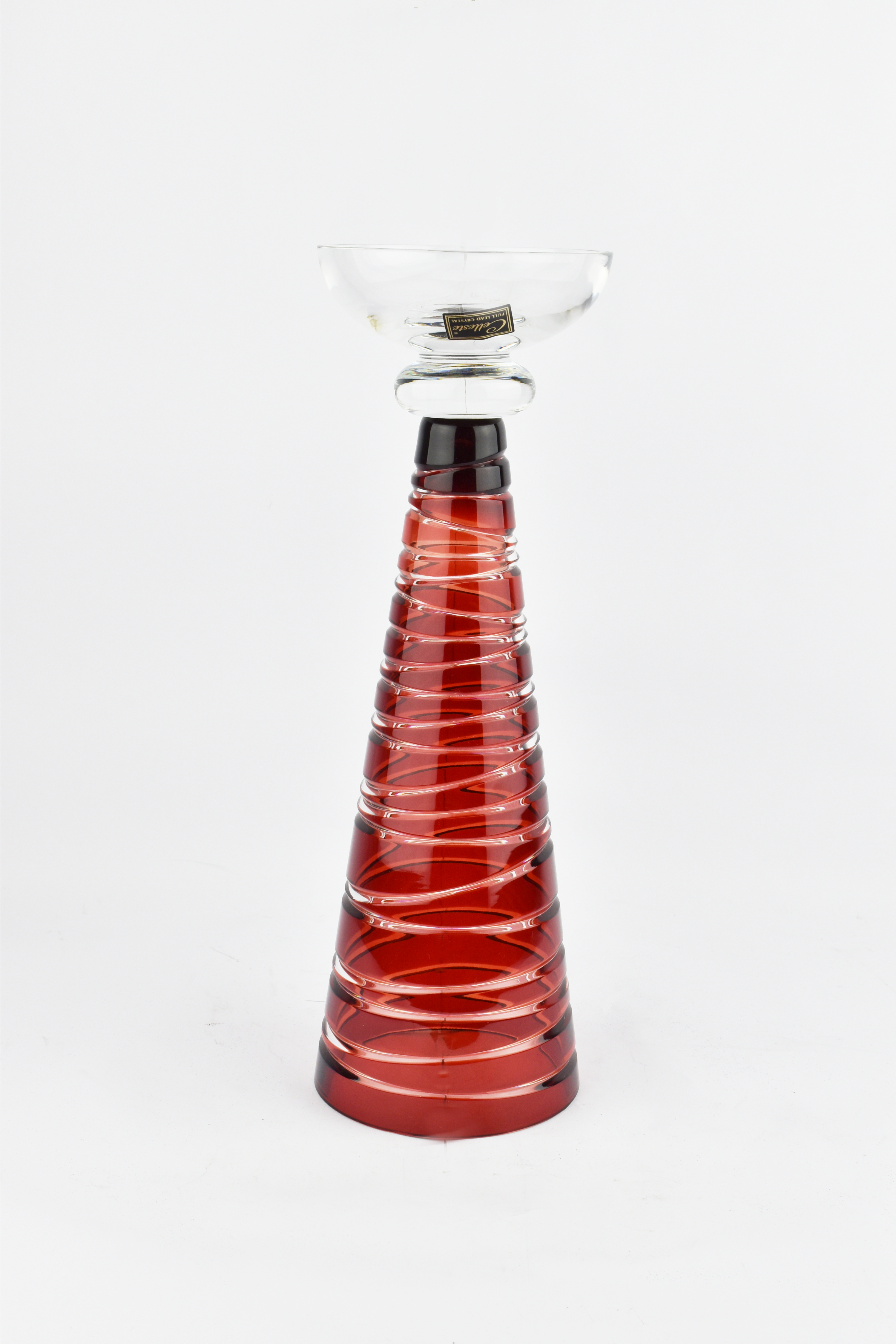 TWO-SIDED VASE WITH RED LINES Crystal Φ11*34