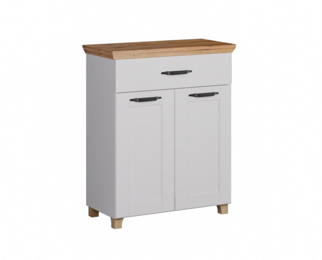 The doors and the front of the drawer are made of high-quality and dense MDF 19mm and vacuum-coated film, chipboard (melamine) body 18mm thick, of the European producers EGGER, KRONOSPAN. Finishing ABS socorro. With certified and guaranteed mechanisms of the European houses INCOLL, HETTICH, TITUS. Metal handles-knobs in a rustic mood by the European house RUJZDESIGN.