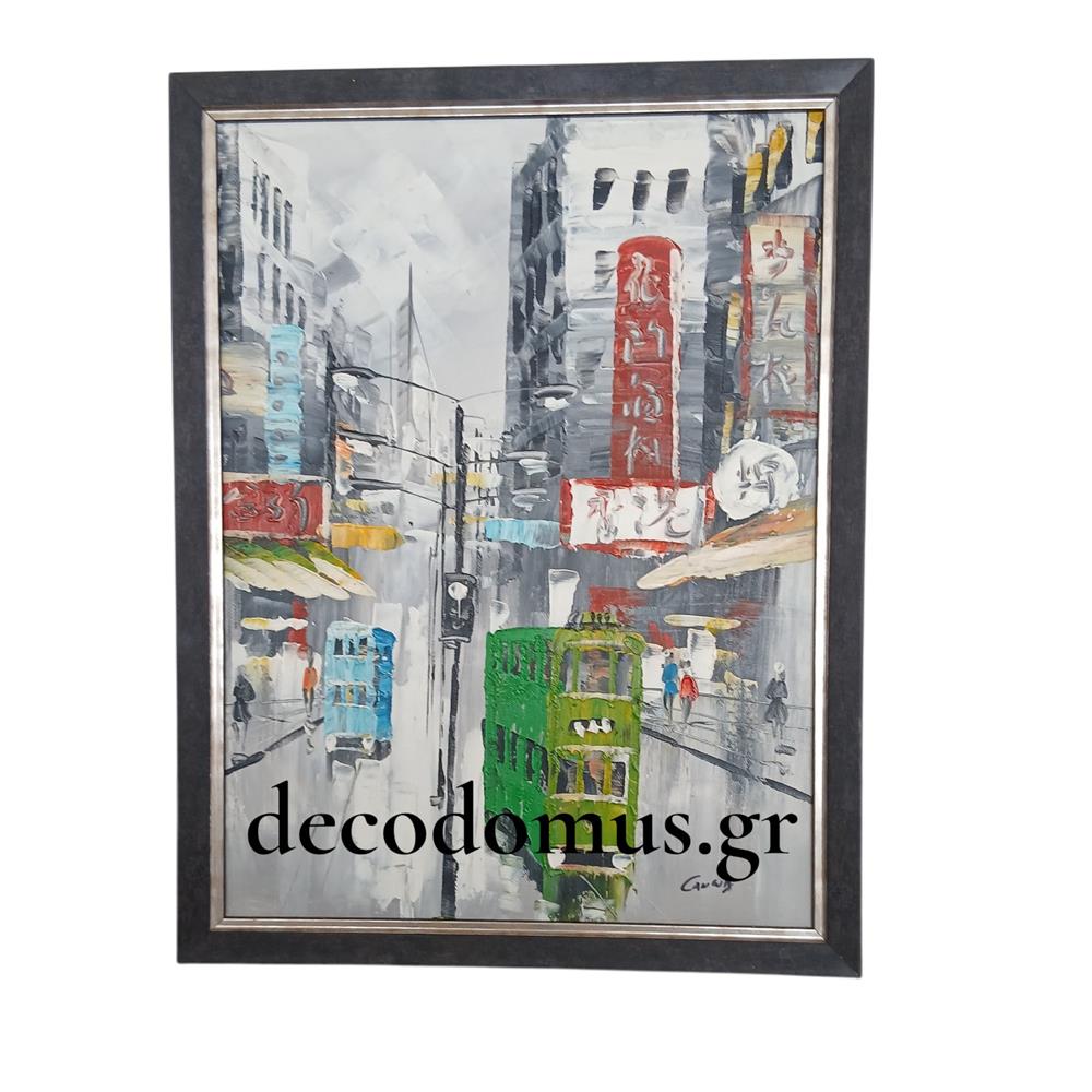 ``HONG KONG`` OIL ON CANVAS WITH BLACK-SILVER FRAME Wood 0.34*0.44