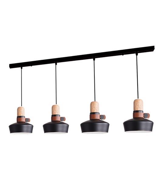 PENDANT LIGHT WITH LINEAR BASE BLACK MATT WITH WOODEN AND LEATHER DETAILS Metal 105x20xh22