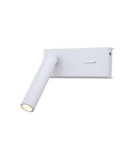 WALL INDOOR LED LIGHT WITH READING STICK AND USB CHARGER, WITH MOVABLE ARM AND SANDY WHITE COLOR Aluminium 16.5x7-19xh6.5