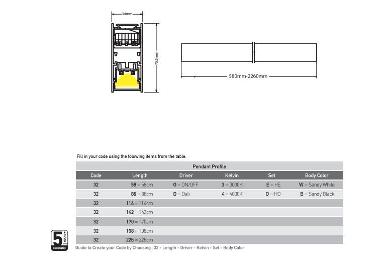 PENDANT PROFILE BLACK FOR LINEAR LIGHTING WITH DALI DRIVER WITH 5 YEARS GUARANTEE Aluminium 58x3.4xh7.55