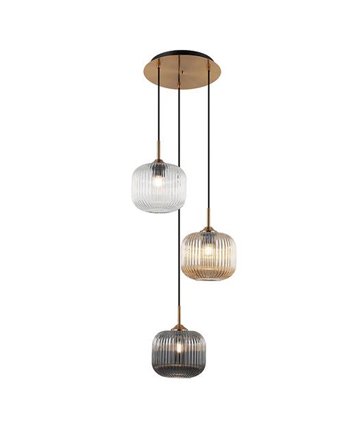 PENDANT LIGHT ANIQUE BRASS WITH TRANSPARENT, SMOKED AND CHAMPAGNE GLASS Metal 40x20xh240