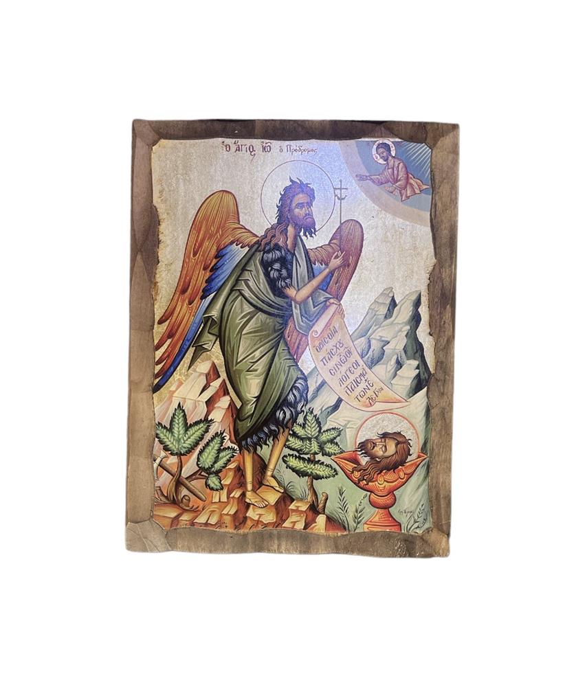 HANDMADE WALL AND TABLE PICTURE HAGIOGRAPHY JOHN THE PRODROMOS WITH GOLDEN LEAF Wood 28x2.5xh21