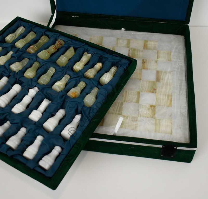 HANMADE MARBLE CHESS IN GREEN VELVET CASE Marble 33x33xh8