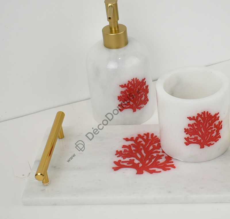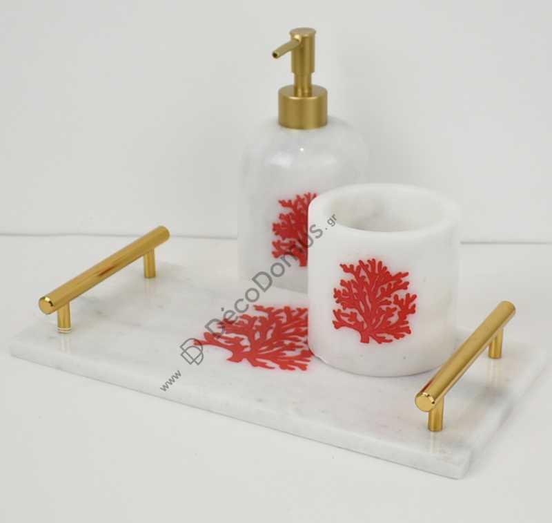 HANDMADE MARBLE BATHROOM SET OF 2 WITH RED CORAL Metal 30x15xh18Salesprice with discount138,0 €