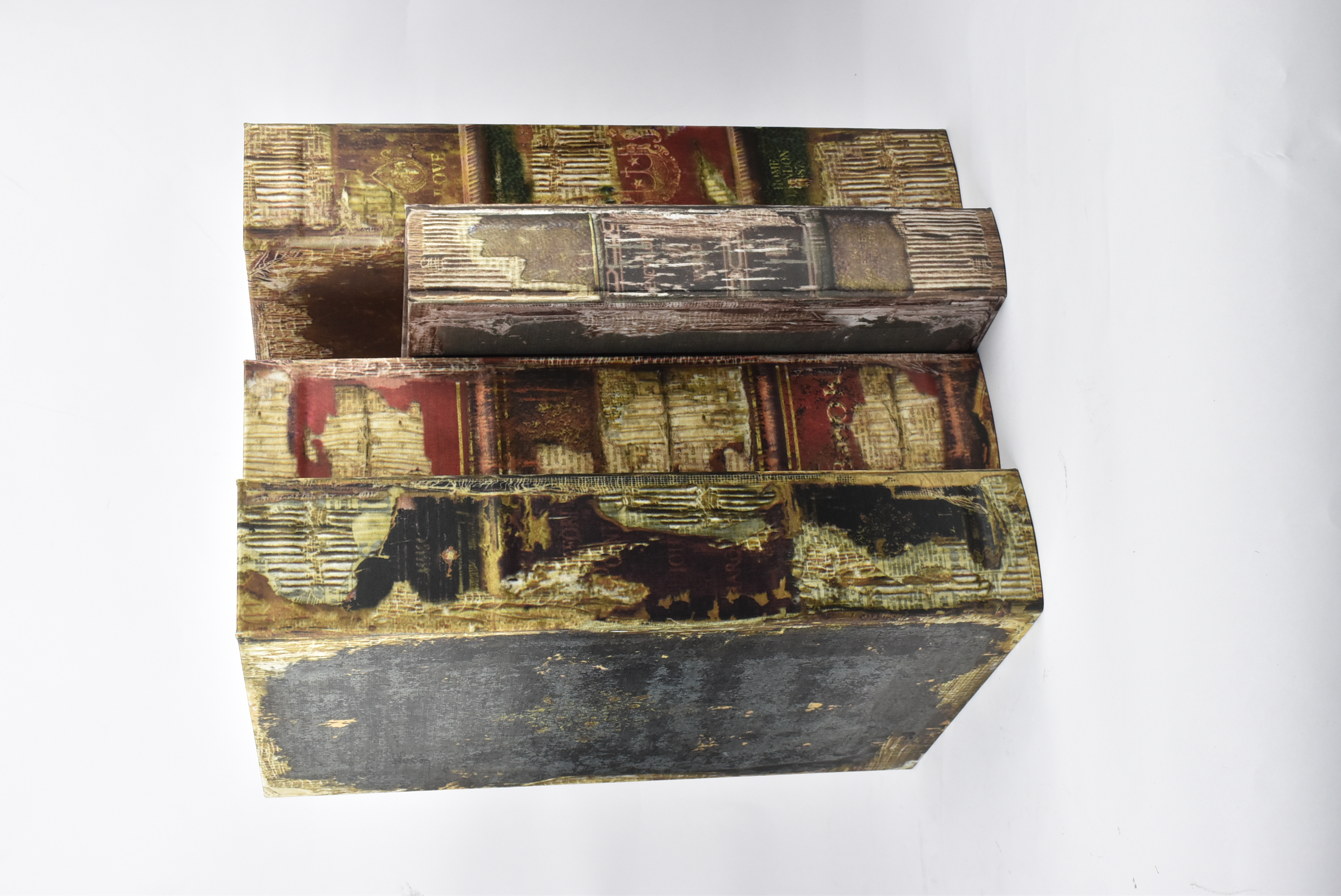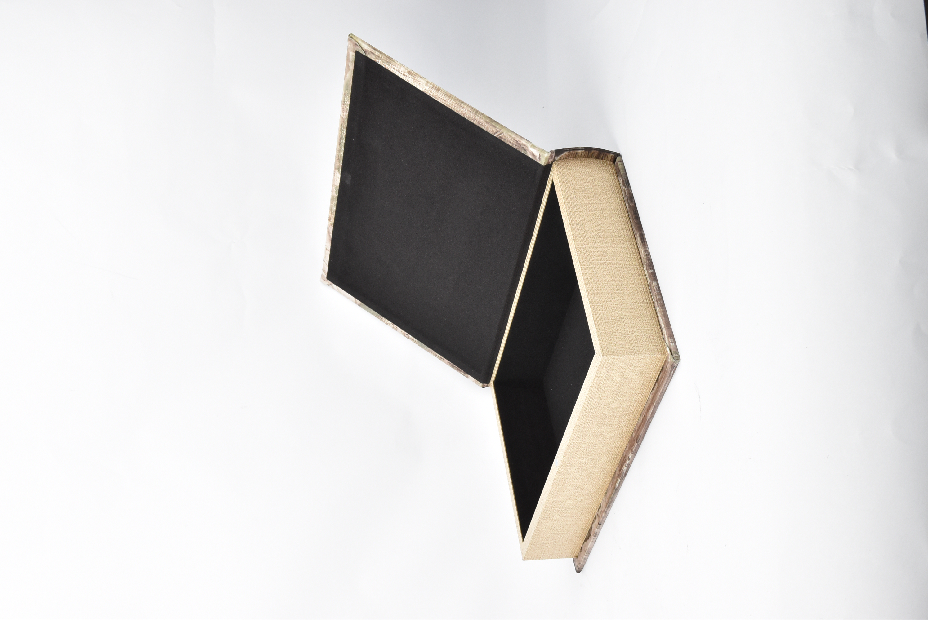 BOOK-BOX BEIGE-BROWN WITH MATURATION Fabric 17X5X26 cm
