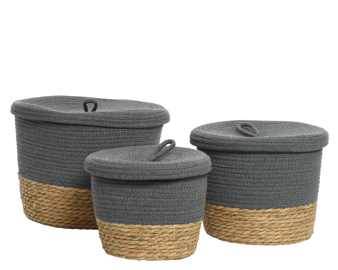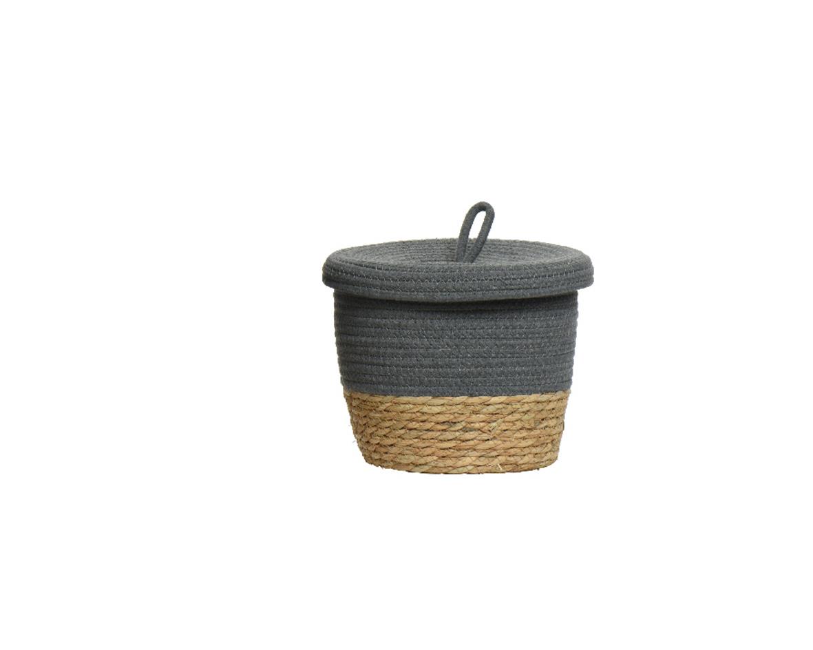 GREY/ BEIGE BASKET WITH CAP SMALL Synthetic dia24*21H