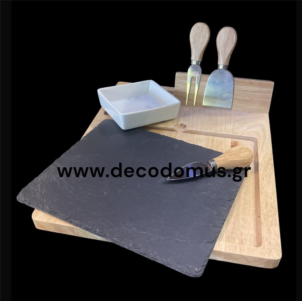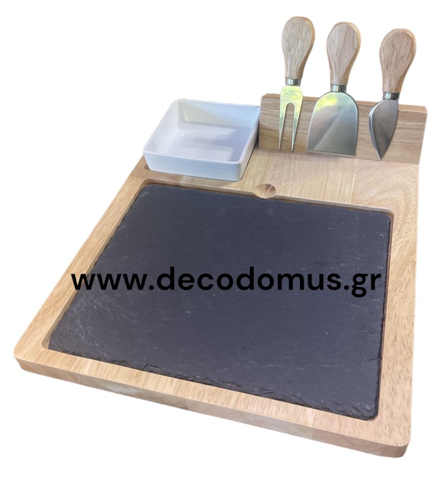 STONE PLATER GOURMET WITH 3 CHEESE KNIVES AND PORCELAIN BOWL Porcelain 27*33*H13