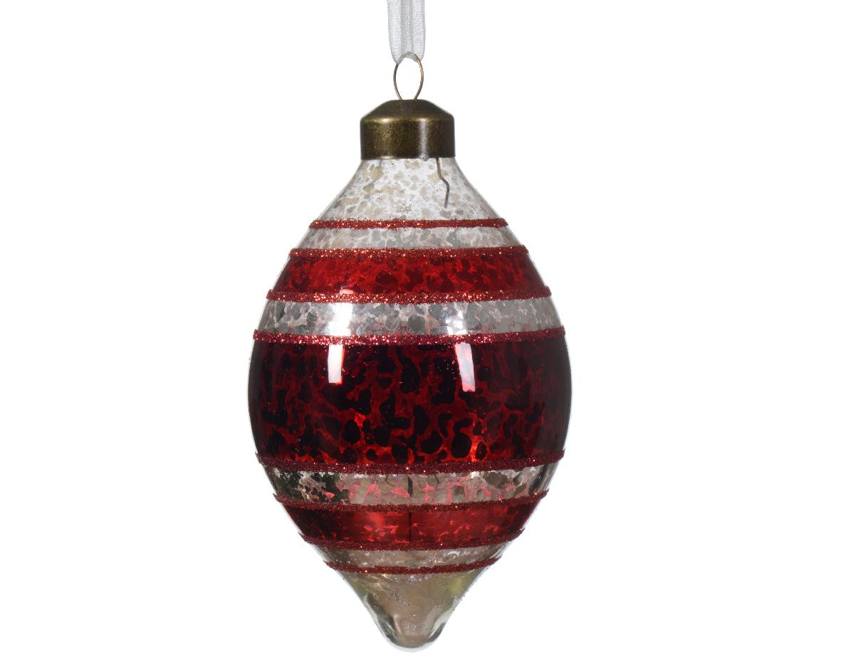 ANTIQUE RED AND SILVER GLASS CHRISTMAS ORNAMENT Glass 8 cm