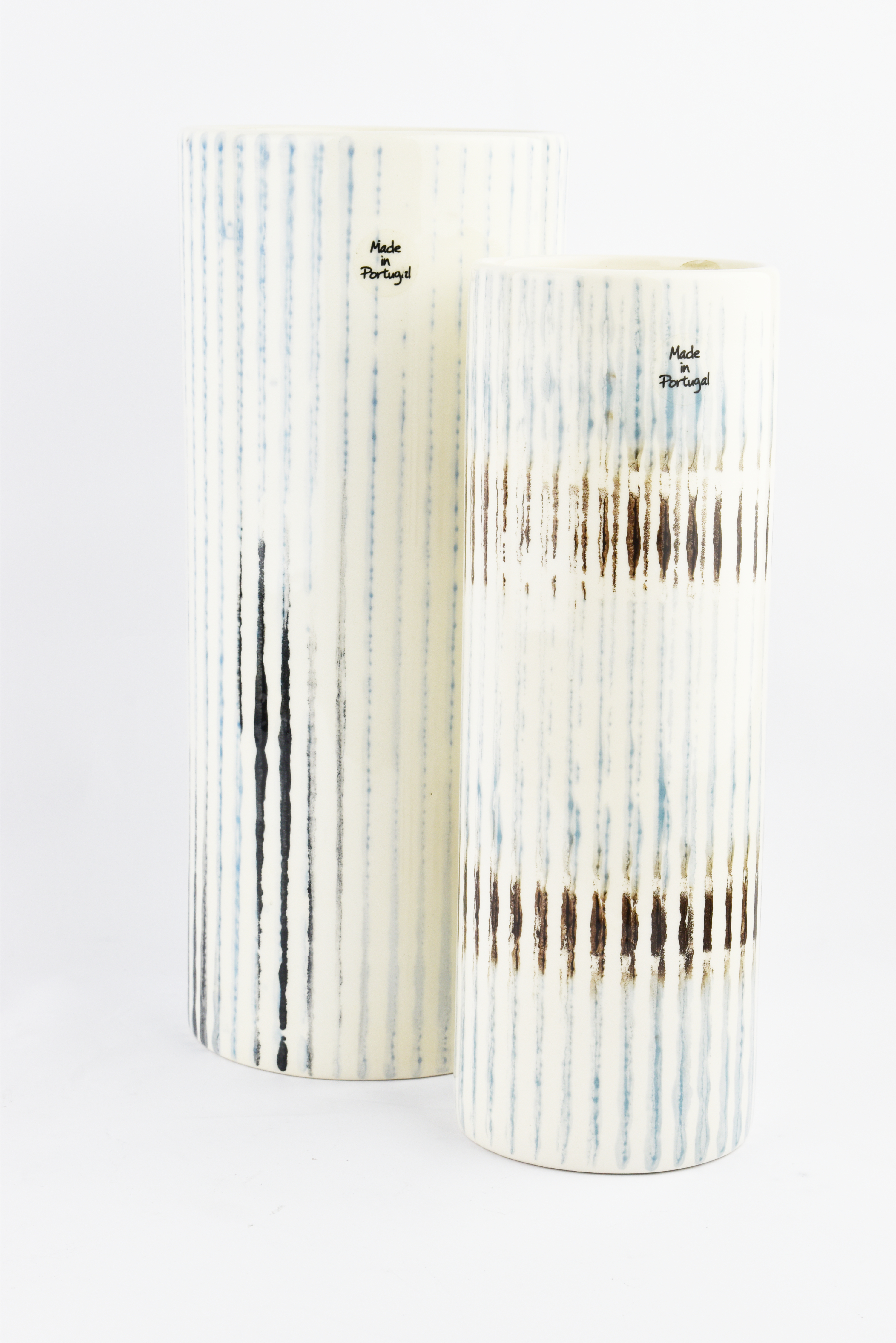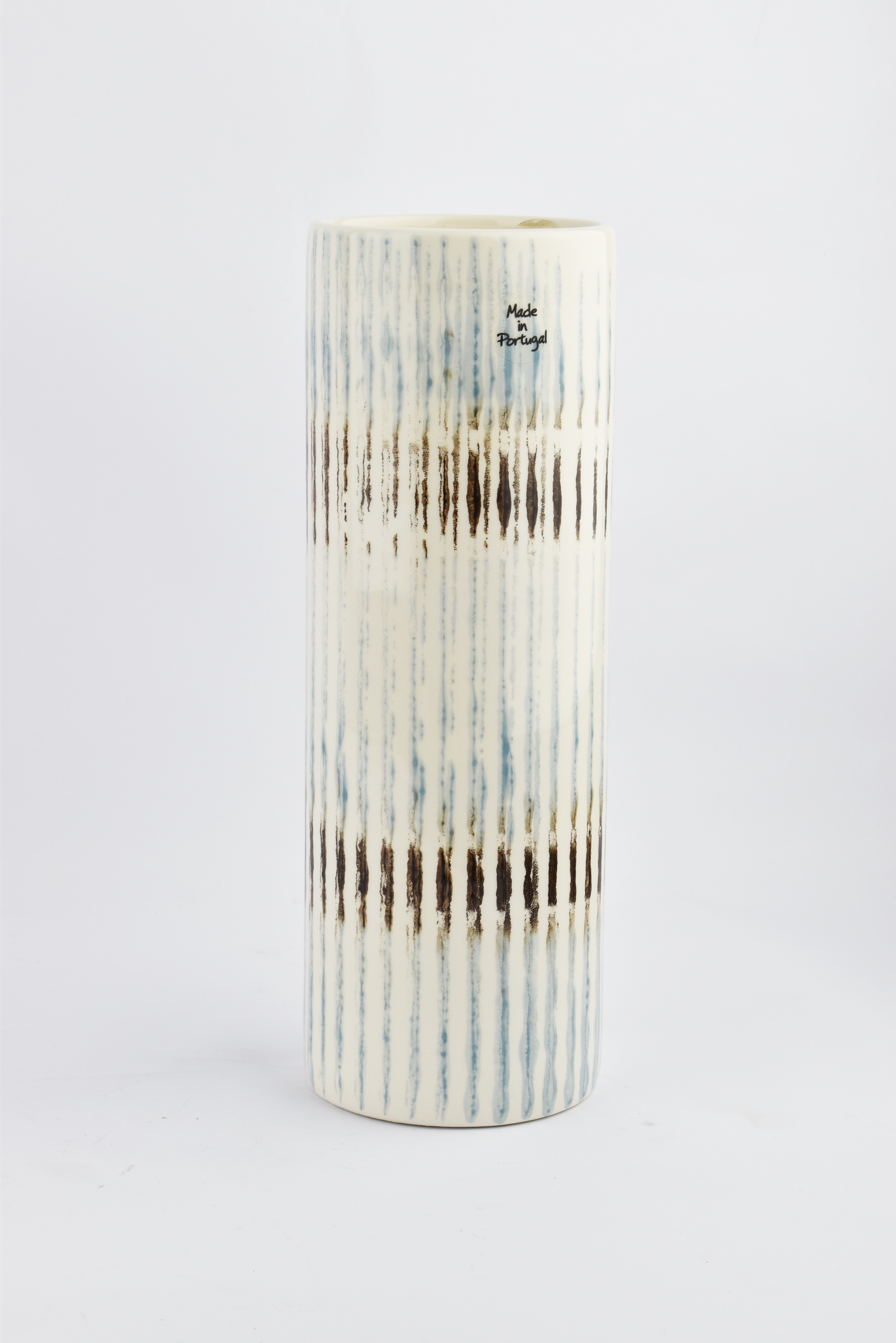 CERAMIC CYLINDRICAL JAR WITH BLUE-GRAY-BLACK LINES Made in Portugal - Kaemingk Ceramic Φ9ΧΗ26 cm