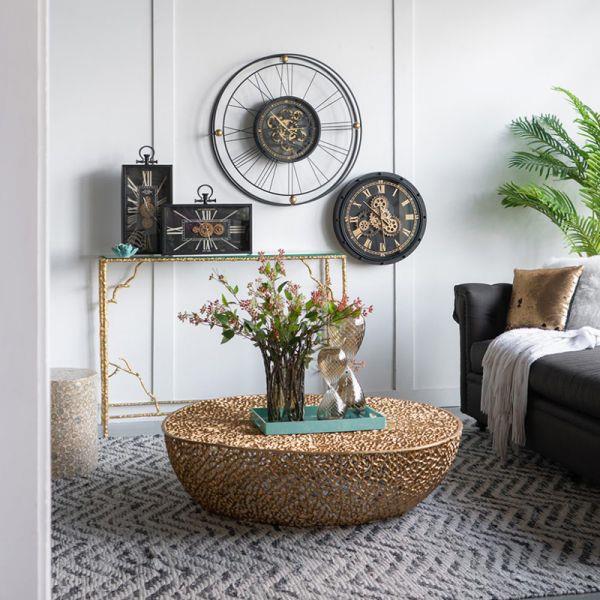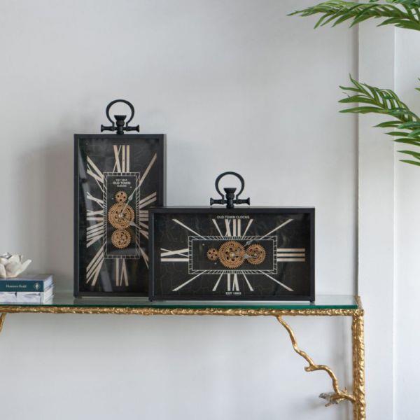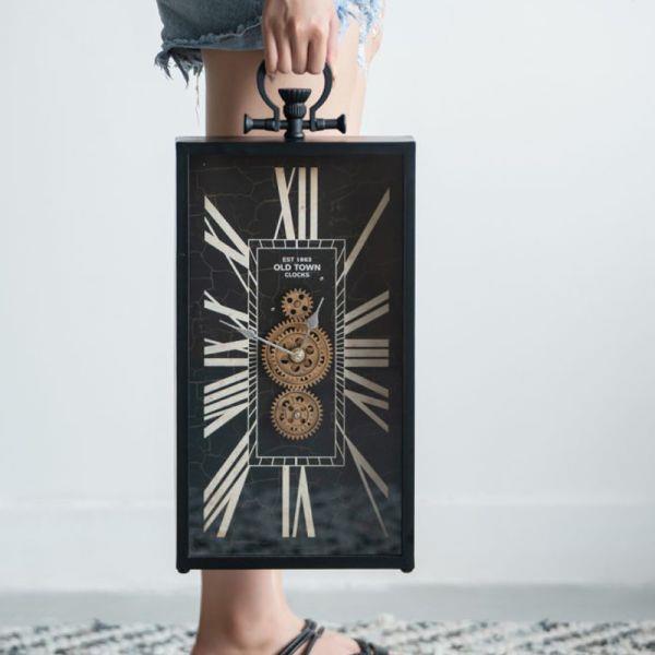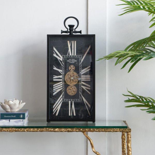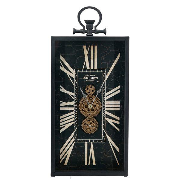 BLACK RECTANGULAR TABLE CLOCK WITH VISIBLE MECHANISM Metal 25*8*H53