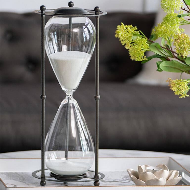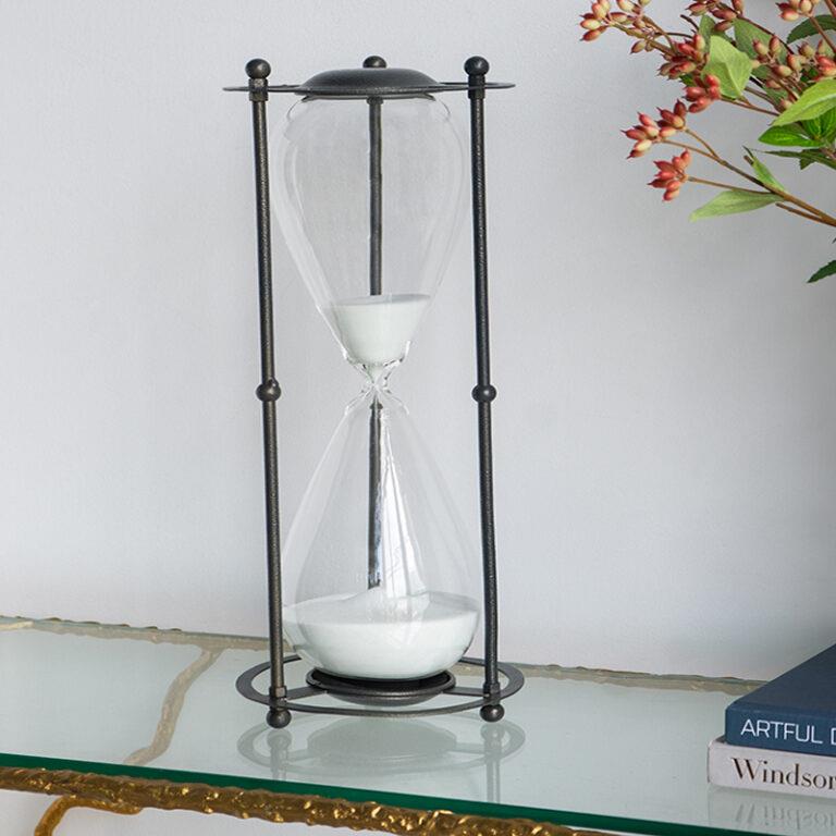 120-MINUTE HOURGLASS WITH WHITE SAND ON A BLACK METAL FRAME Metal 18*18*H48