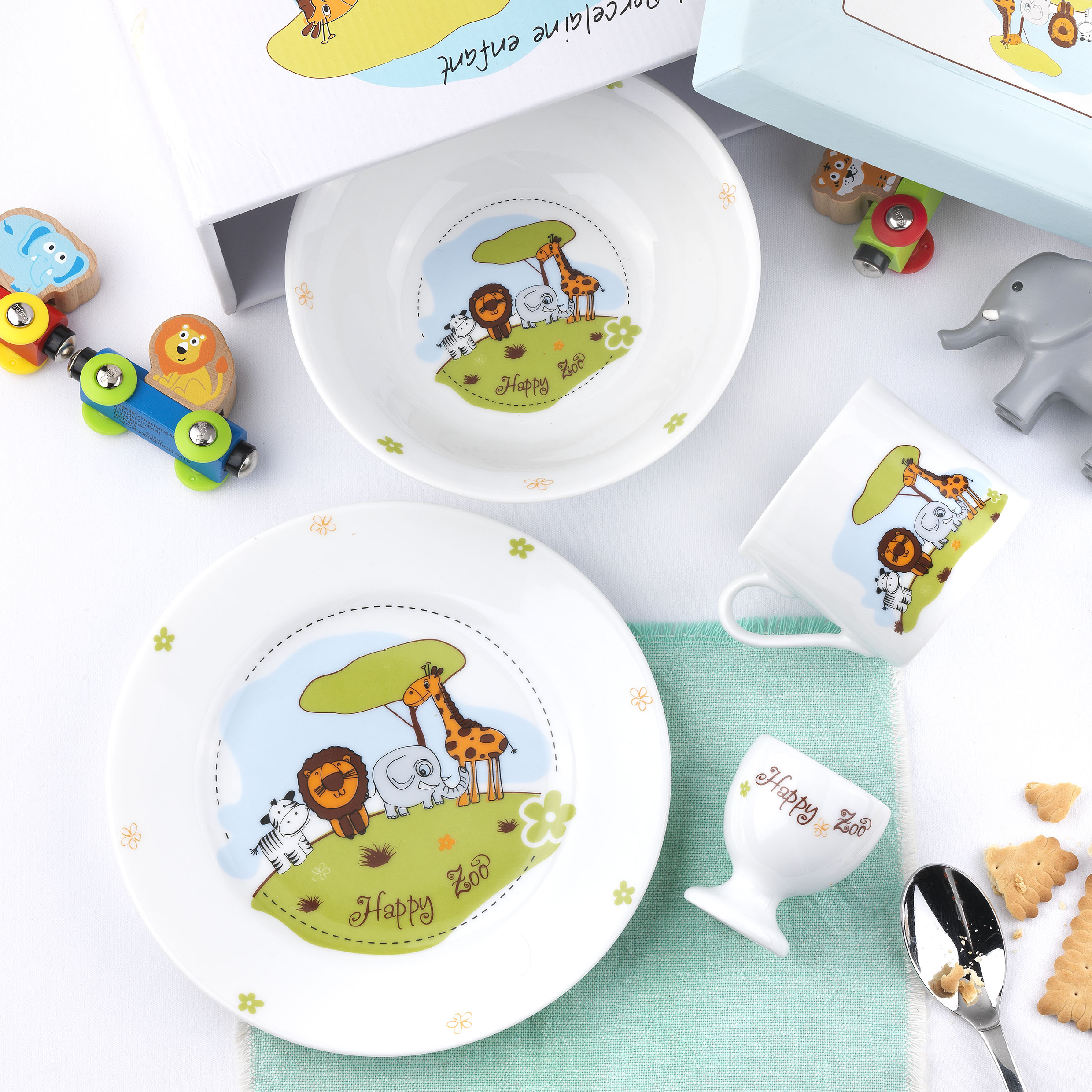 CHILDREN`S DINNER SET 4 PIECES FOR BOY HAPPY ZOO Porcelain 21*11*19.5