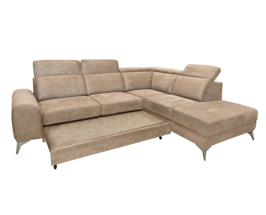 Corner sofa with bed Diego Beige Left side 288x230x102cm. Melamine L2.88W2.3H0.85