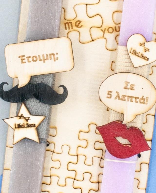 For those who love a lot and want to share even their candle on Easter, this double proposal is excellent. Two wonderful lamps, in gray and pink shades, are \"hosted\" on a wooden frame with relief designs.
