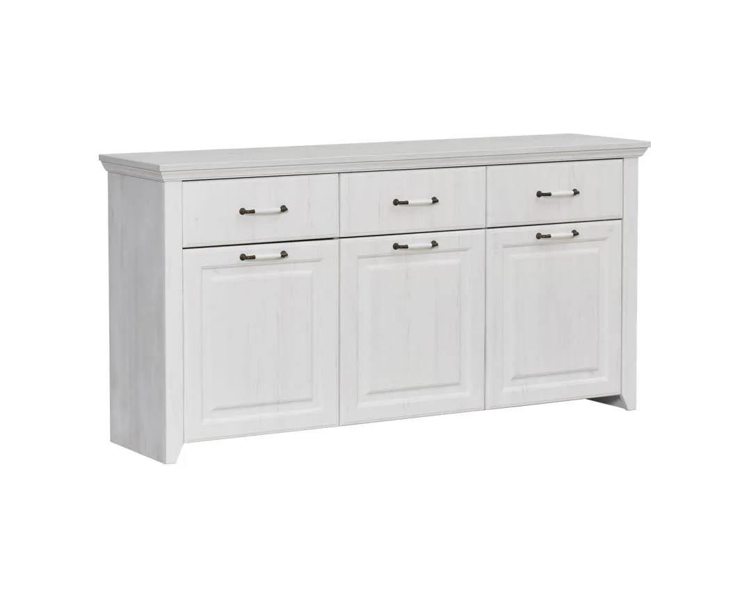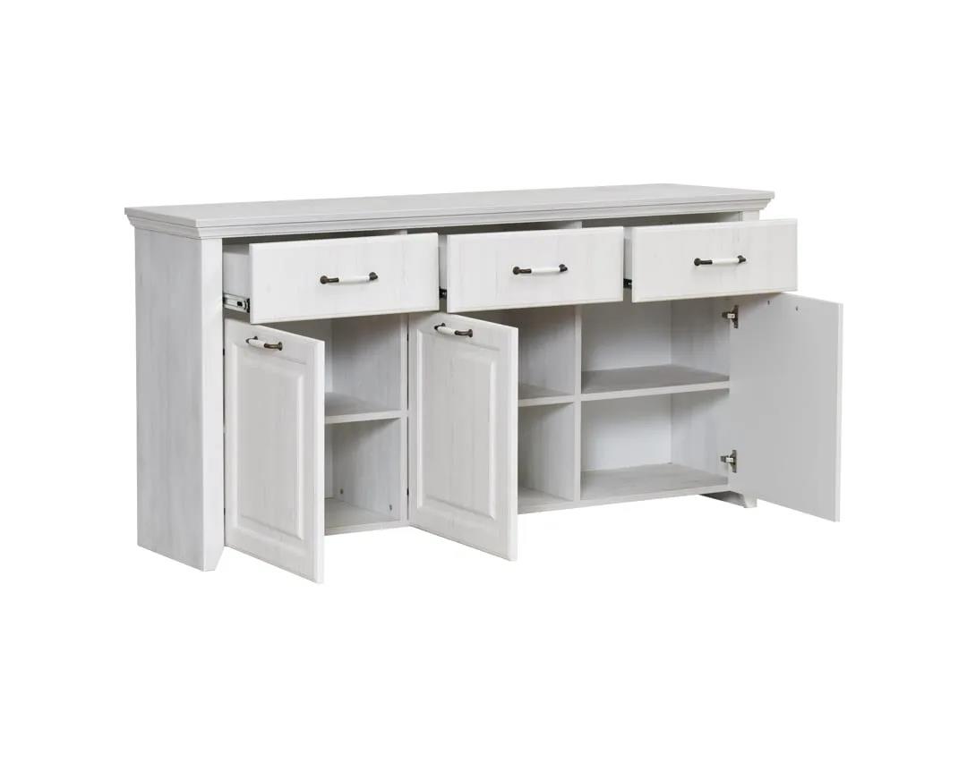 Sideboard with TV composition, 3 drawers with telescopic mechanisms, 3 cabinet doors, and 2 storage levels. Doors made of high-quality MDF material, coated and vacuum-coated with film - membrane for absolute quality durability and timeless Rustic aesthetics.
