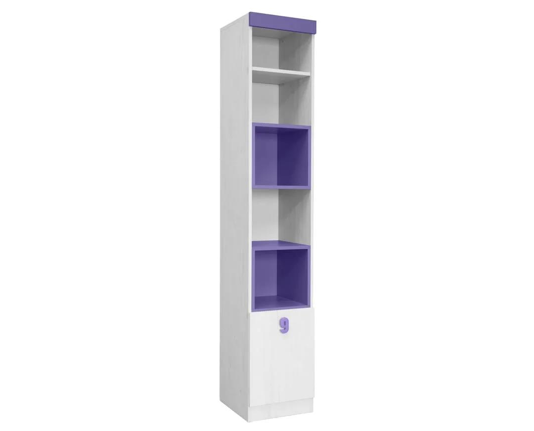Single-leaf bookcase column with a single-door cabinet at the bottom of the column. It has 6 shelves, 7 storage levels. Basic color in modern white oak, and details in 5 cheerful colors. It is made of high-quality and dense chipboard (melamine) 18 mm thick from the European producers EGGER, KRONOSPAN. With certified and guaranteed mechanisms of the European houses INCOLL, HETTICH, TITUS. Handles - knobs in the shape of numbers and 5 different colors. ABS socorro finish.