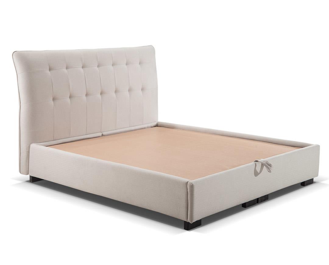Modern bed, of high quality and aesthetics with storage space. It includes a bed frame for all types of 160*200cm mattress, raised with a shock absorber with a simple movement to access the storage area, in which there are 2 air ducts for continuous air circulation. The storage area consists of 2 boxes of 70*200cm for easier and safe transport. Solid beech wood legs. The height of the headboard is 125cm. Choose the color and texture of the fabric that suits you in your room and rest every day. The price includes the cost of fabric.