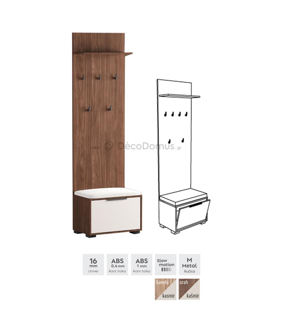 SMART series shoe rack with hanger, made of high quality MDF, in walnut-kasmir color.