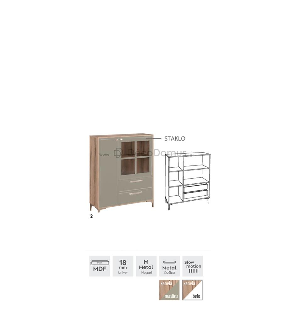 ALBA LOW SHOWCASE WITH 2 DRAWERS 102.5X35.5X125 OLIVE CINNAMON MDF L1.025W0.355H1.25