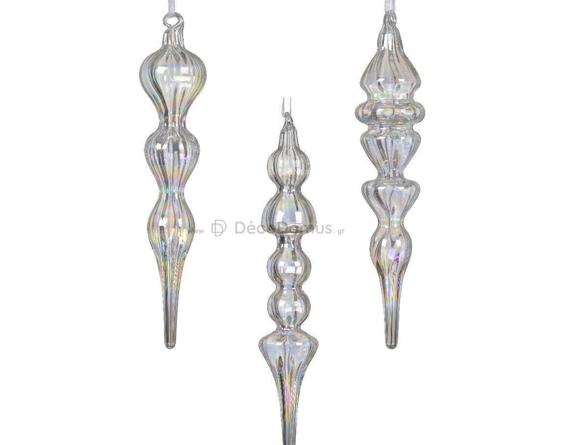 GLASS ORNAMENT TRANSPARENT IRIS FINISH 3 PATTERNS KAEMINGK Glass Φ0.038*Η0.18