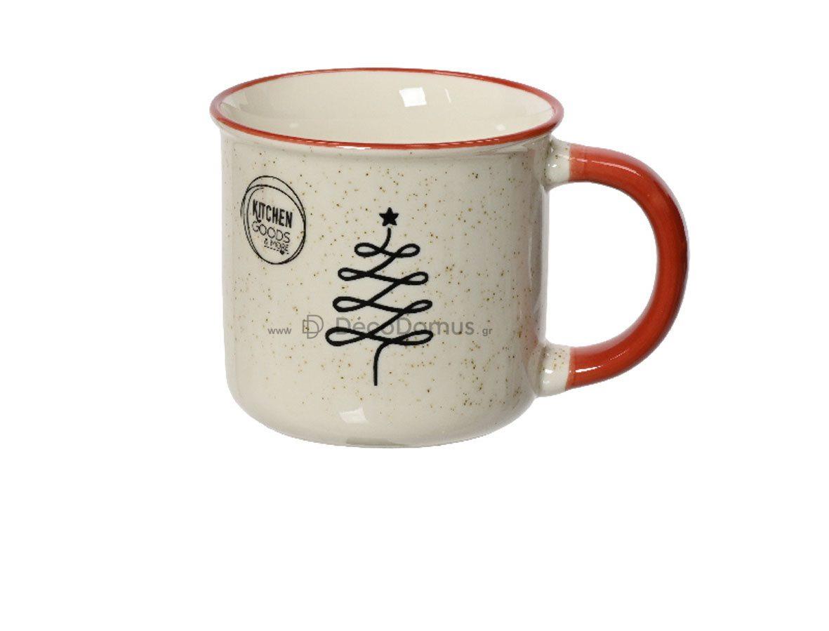 PORCELAIN MUG WITH CHRISTMAS SILK PRINT AND RED RIM AND HANDLE KAEMINGK Porcelain L0.12W0.09H0.082