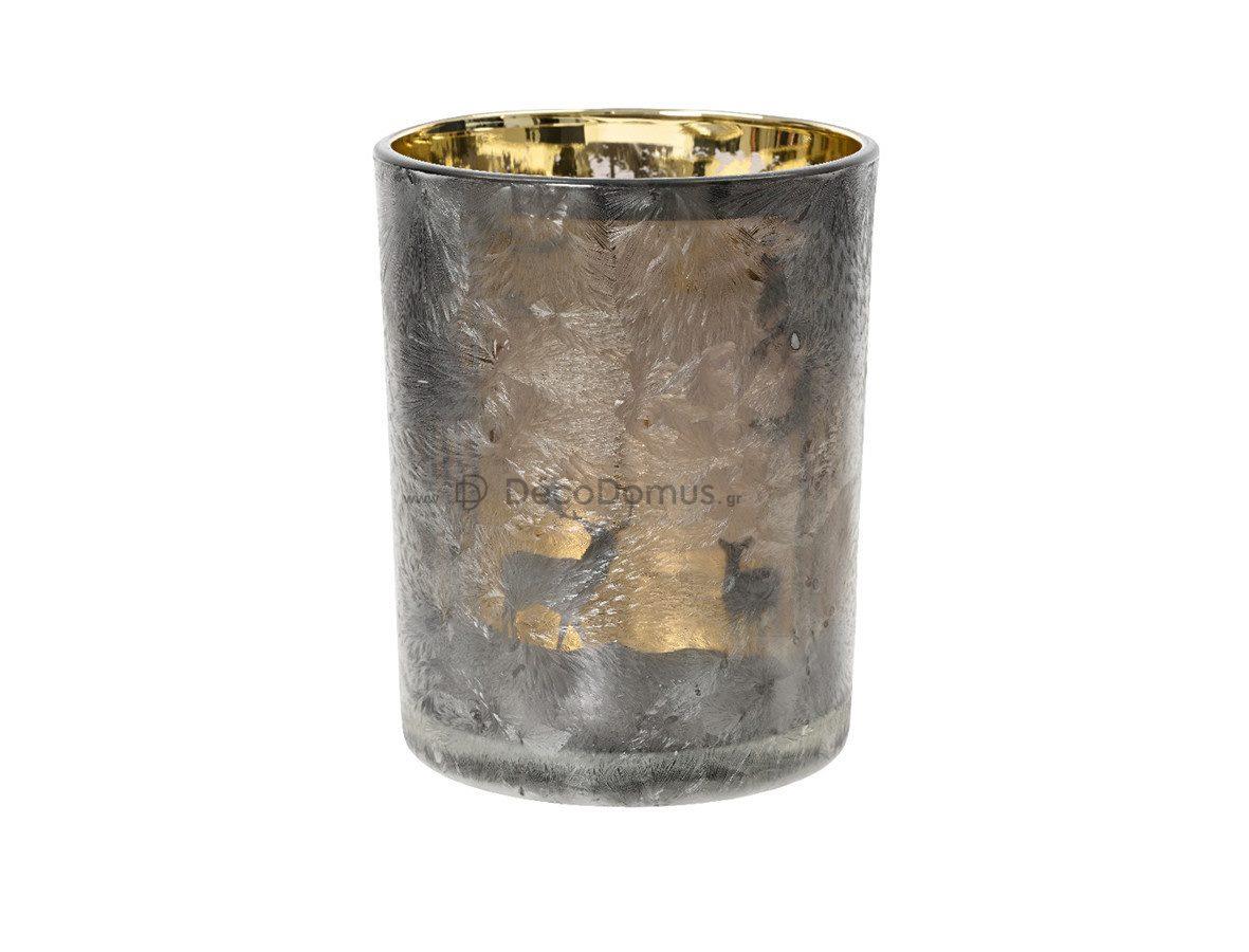 LARGE GLASS TEALIGHTHOLDER WITH ICE EFFECT AND SILVER INSIDE PATTERNS KAEMINGK Glass Φ0.12*Η0.18