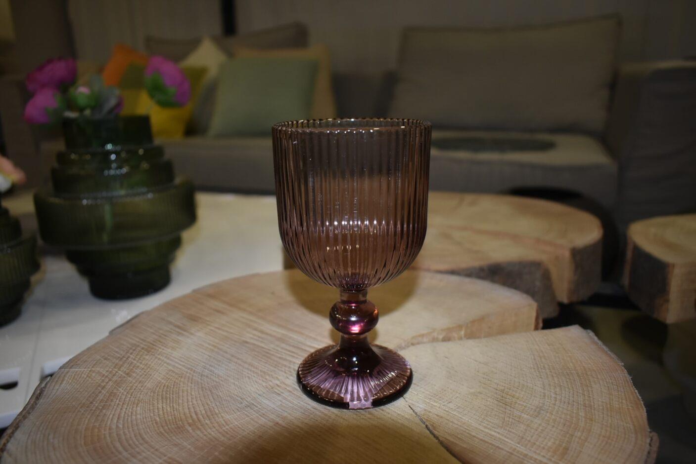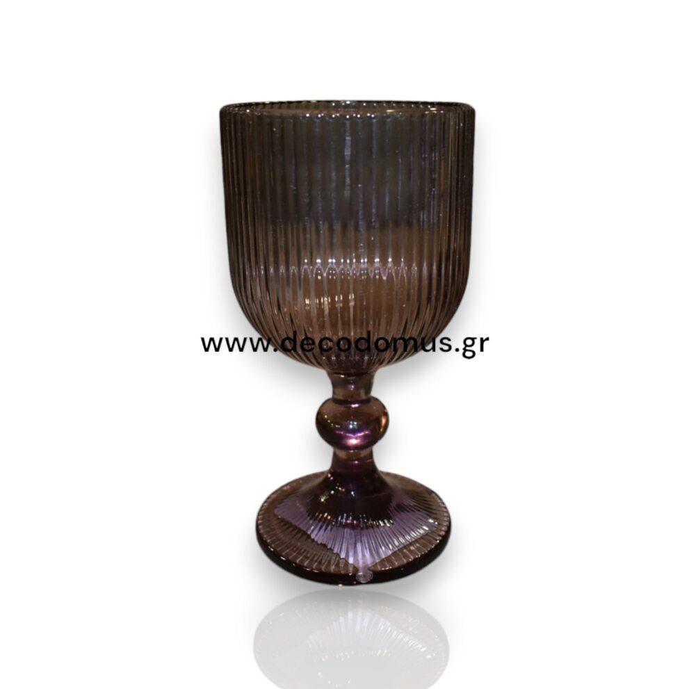 WATER GLASS WITH LEG PURPLE EMBOSSED 365ml 6 PCS Glass Φ0.088*Η0.163