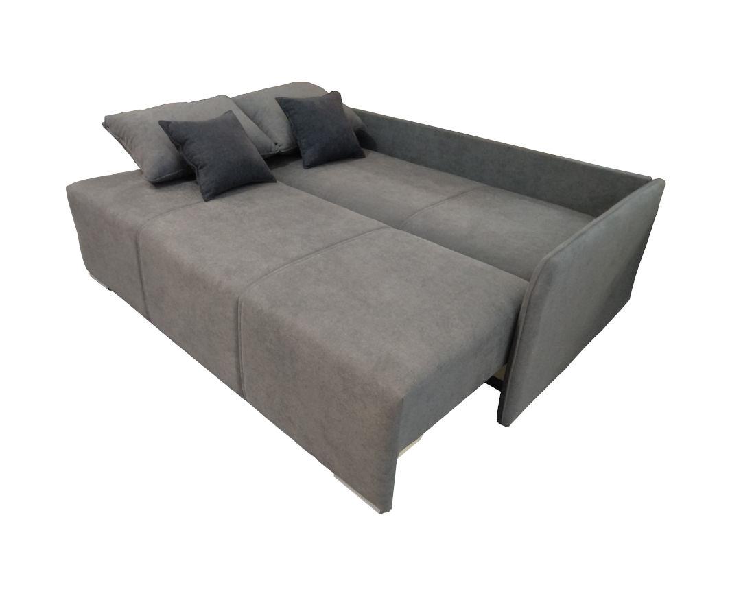 Three-seater sofa with bed and storage space. Bonnel spring core and scy cell foam layer for greater comfort and relaxation when sitting and sleeping. Suitable for daily sleeping. By pulling the sliding wheeled seat forward and throwing the back, it offers us a double bed measuring 150X195cm. Behind the back there is a reinforcement board, while under the seat it offers us storage space. By bringing the back cushions it offers us a single bed measuring 80*195cm. The thin armrests give us a modern aesthetic, but also space saving. Functionality, aesthetics, high quality at a competitive price. Choose one of the following modern colors for immediate delivery or make it by choosing the color that suits you from the high-quality and densely knitted MD factory fabric palettes.