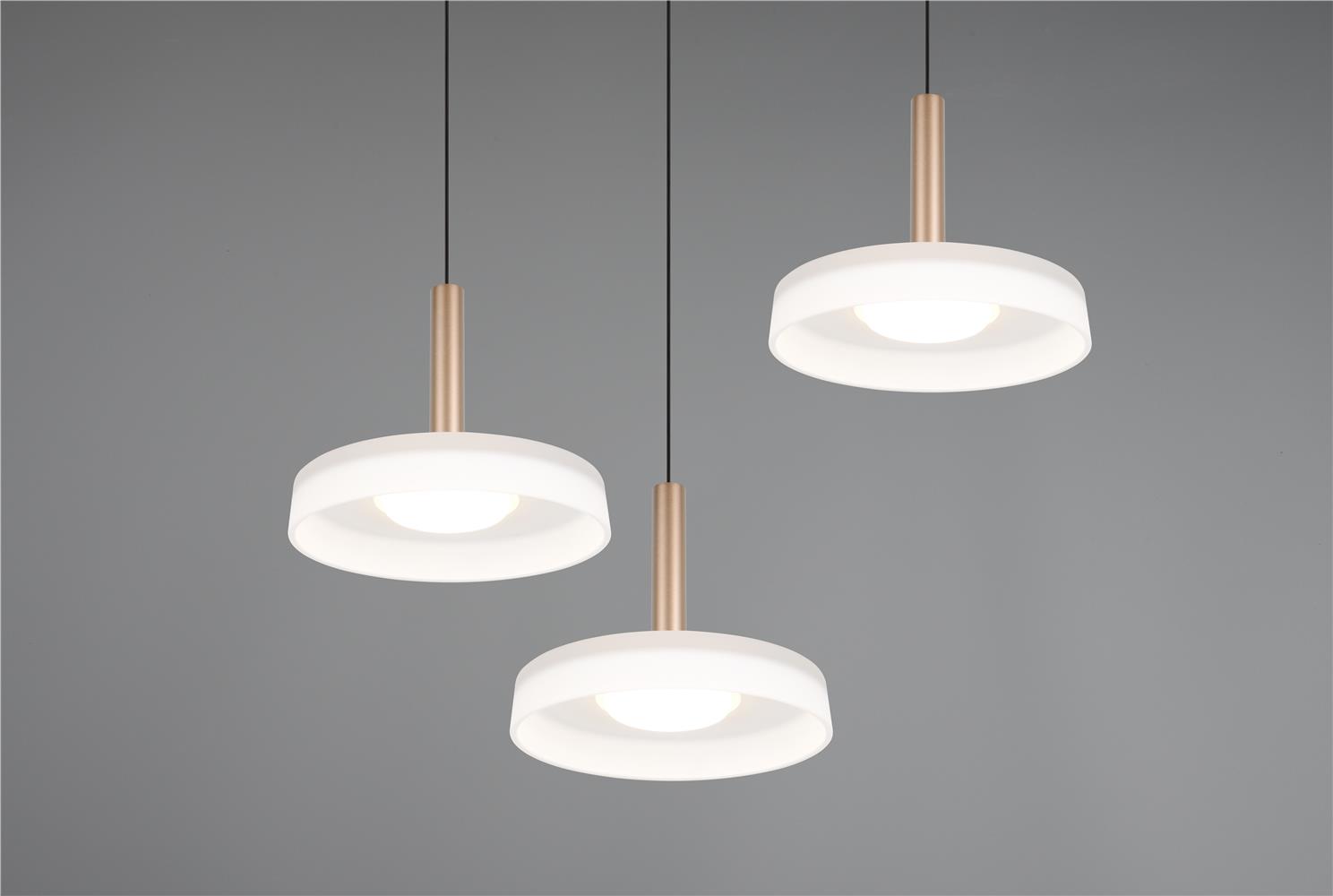 The CELESTE pendant light combines stylish elegance with high functionality. Its unique metal and glass design creates special accents in any room. The futuristically designed glass shades fascinate with a matt surface that creates breathtaking plays of light and a warm, inviting atmosphere. With the innovative Lift me function, the height of the light can be flexibly adjusted to suit your needs. Whether above the dining table, in the kitchen or in the living room - CELESTE always provides the perfect lighting. Thanks to the integrated SWITCH dimmer, you can control the brightness in three levels directly via the conventional light switch. This gives you full control over the light intensity and allows you to adjust the light to suit your mood or the time of day. The stylish combination of metal in coffee and matt black and white glass blends seamlessly into both modern and classic furnishing styles and allows the light to shine in any setting. The luminaire also features modern LED technology, which is characterised by high light quality and energy efficiency. Compared to conventional halogen light sources, up to 80% of energy costs can be saved. LED light sources also have a long service life, produce less heat and protect the environment.