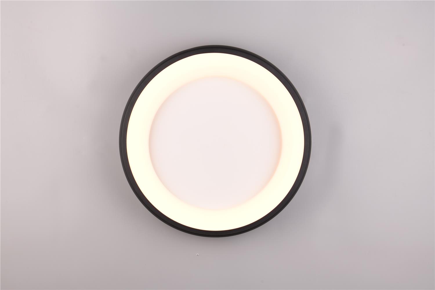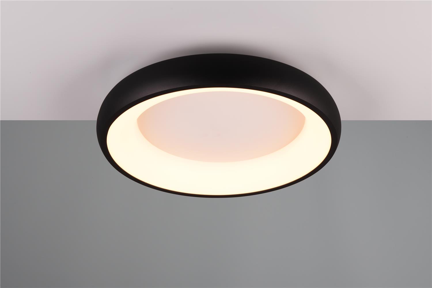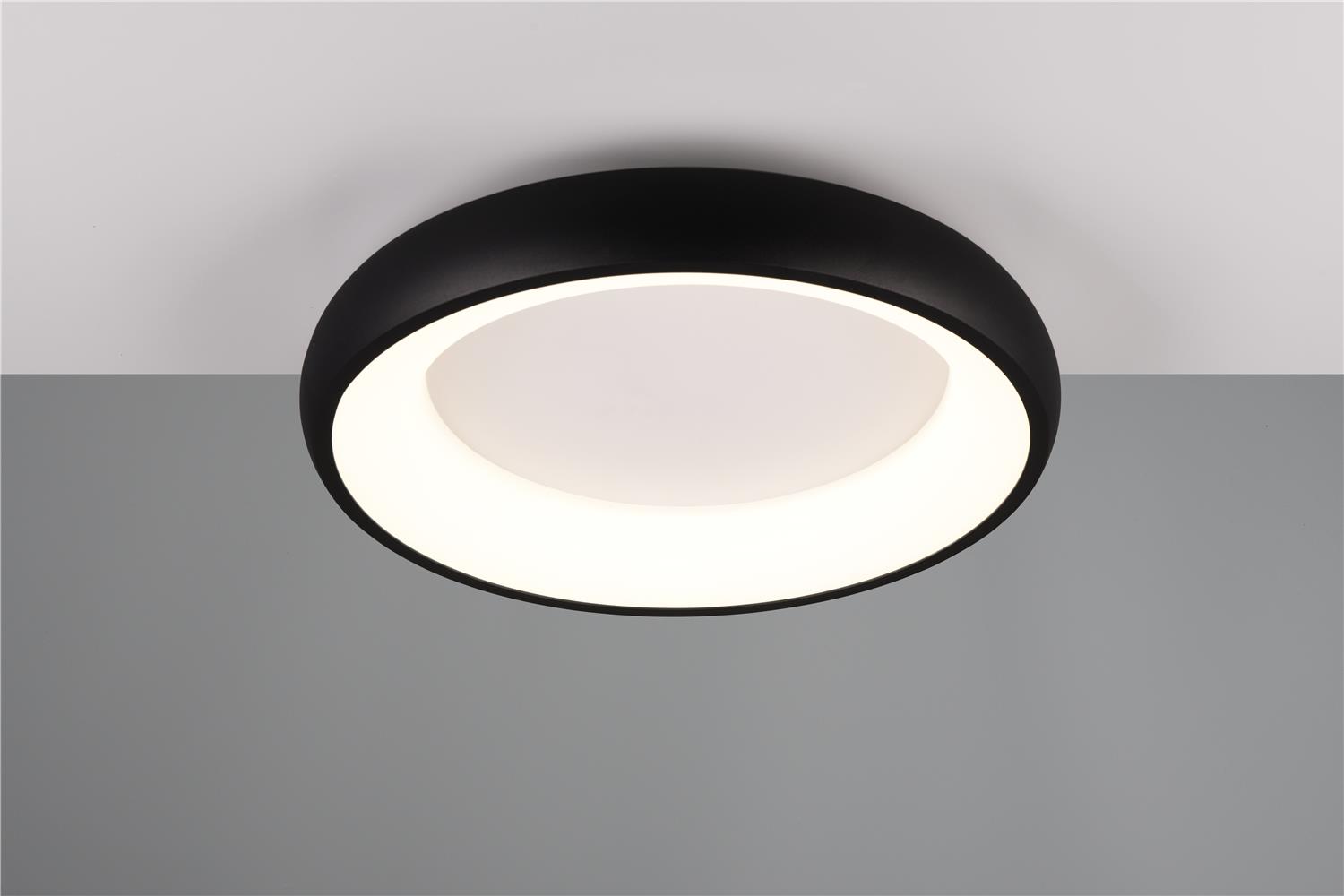 Clarity and functionality combined - the CARDONA ceiling light impresses with its striking design, which is characterised by a ring. This elegant ring seems to literally float below the ceiling and attracts everyone\'s attention. Ideal for modern living rooms, offices or dining rooms, the luminaire provides uniform, glare-free lighting thanks to the subtle light source inside the ring, creating a pleasant atmosphere. The brightness can be regulated in three levels using a conventional light switch and the light colour can be adjusted directly using a switch on the luminaire. The black matt surface gives every room a timeless elegance and a modern touch. The luminaire also features modern LED technology, which is characterised by high light quality and energy efficiency. Compared to conventional halogen light sources, up to 80% of energy costs can be saved. LED light sources also have a long service life, produce less heat and protect the environment.