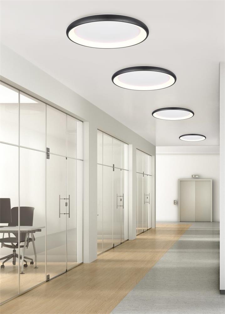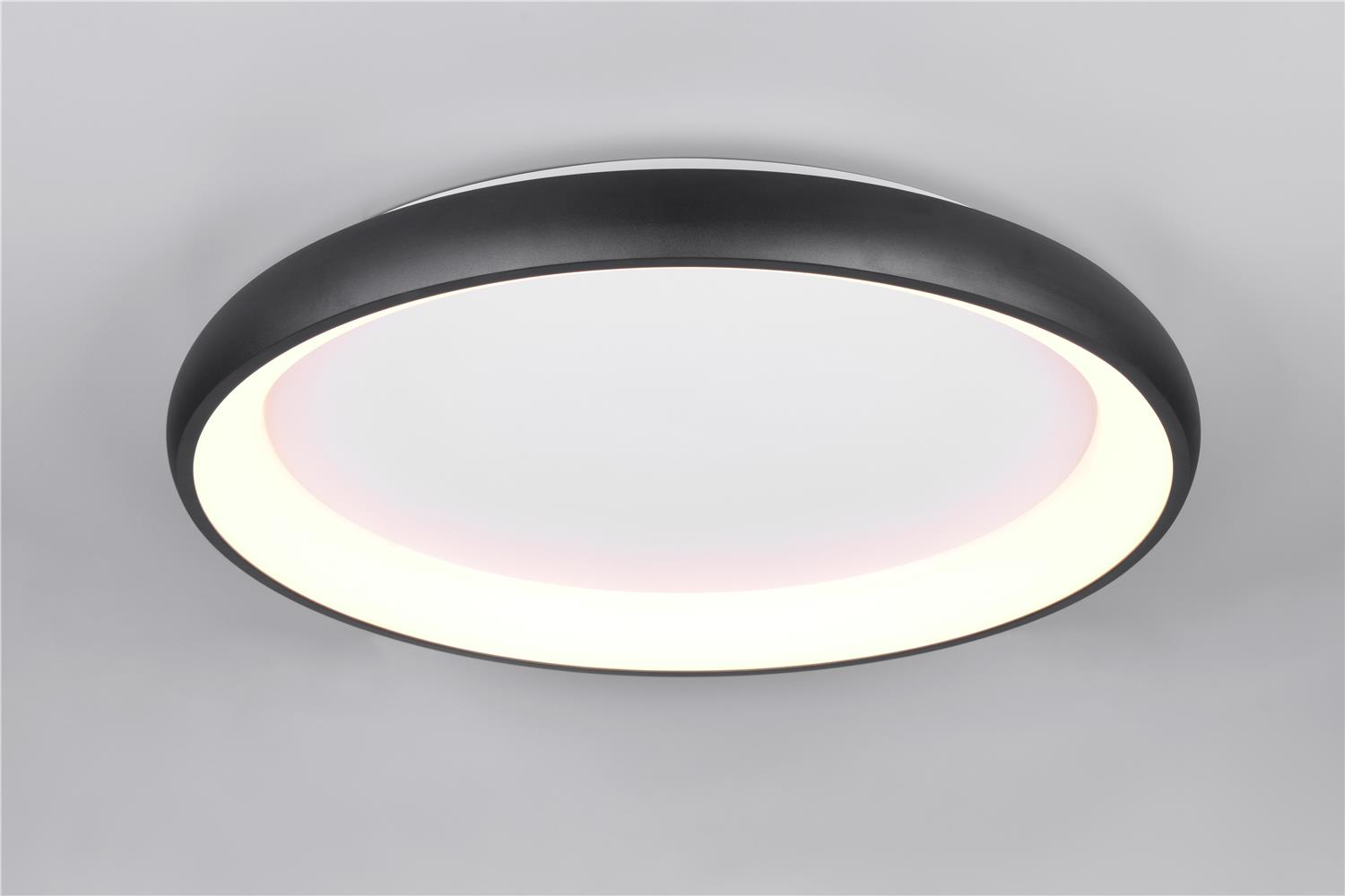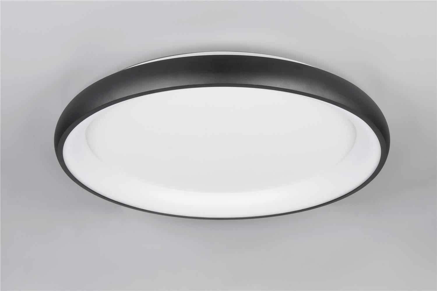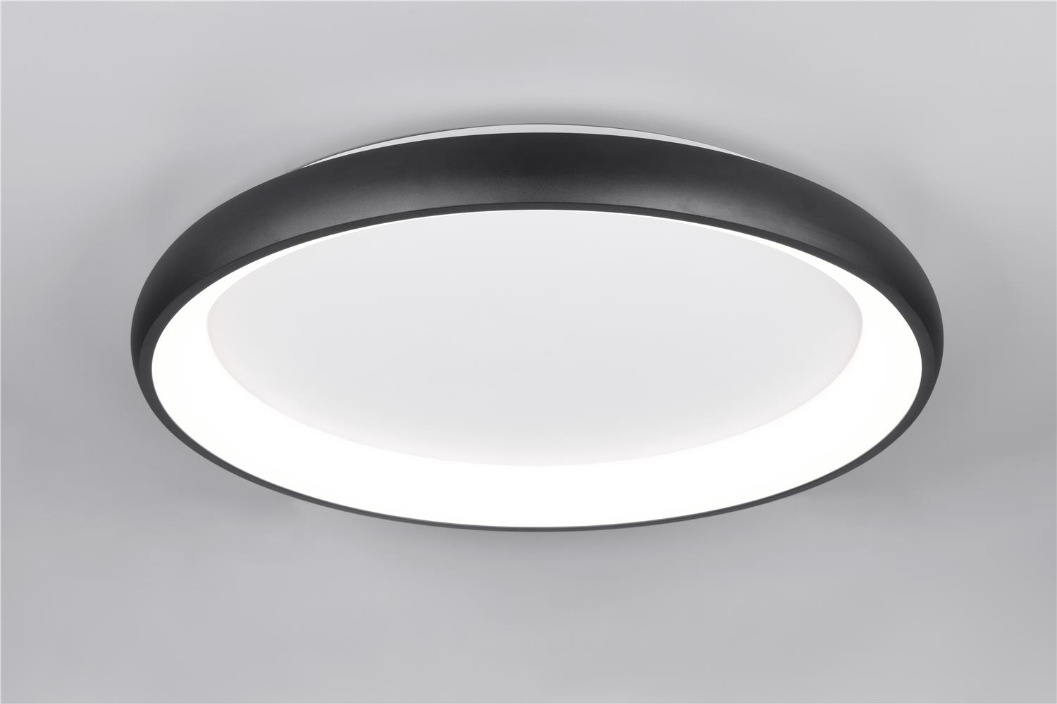 Clarity and functionality combined - the CARDONA ceiling light impresses with its striking design, which is characterised by a ring. This elegant ring seems to literally float below the ceiling and attracts everyone\'s attention. Ideal for modern living rooms, offices or dining rooms, the luminaire provides uniform, glare-free lighting thanks to the subtle light source inside the ring, creating a pleasant atmosphere. The brightness can be regulated in three levels using a conventional light switch and the light colour can be adjusted directly using a switch on the luminaire. The black matt surface gives every room a timeless elegance and a modern touch. The luminaire also features modern LED technology, which is characterised by high light quality and energy efficiency. Compared to conventional halogen light sources, up to 80% of energy costs can be saved. LED light sources also have a long service life, produce less heat and protect the environment.