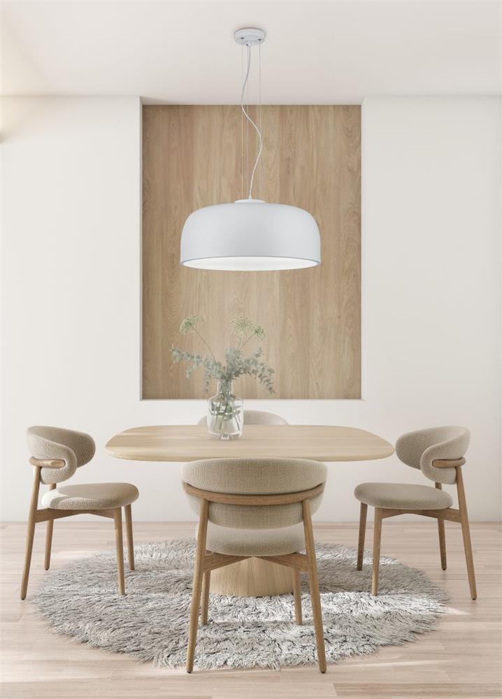 Simple, elegant, stylish. The BARON pendant light meets modern interiors with its simple shape and colour scheme. The four-light pendant luminaire emits a pleasant, glare-free light, which is achieved via a cover made of high-quality acrylic. It also creates a soft light that stylishly emphasises your living area. The pendant light has a diameter of 52 cm and a maximum suspension length of 150 cm, which can be individually adjusted during installation. The simple matt white colour scheme underlines the modern character of the pendant light and can be integrated into numerous colour concepts. For energy-saving lighting, it is recommended to use an LED illuminant. These are an optimal alternative to conventional halogen lamps and stand for a high quality of light and energy savings of up to 80%. In addition, LED lamps help you benefit from a long service life, low heat generation and at the same time protect the environment.