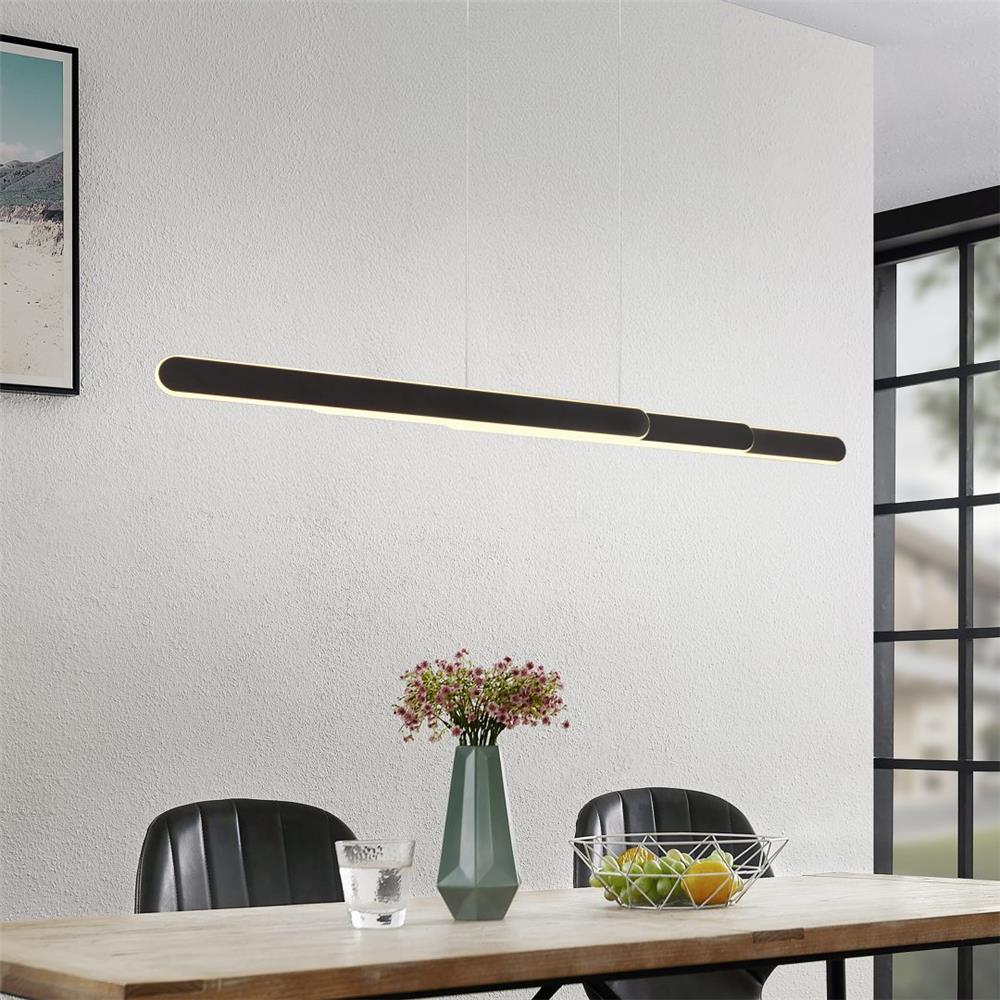The HELIOS pendant light will be the centrepiece of your dining area. The clear and modern lines of the light bring a stylish flair to your home, which is emphasised by the up and down lighting. As the HELIOS is height-adjustable and can be easily pulled apart, it is ideal for extendable dining tables. Another highlight is the integrated 4-fold touch function. Both the brightness levels and the light colour can be adjusted as required at the touch of a button. The matt black colour design is a real eye-catcher in your interior design concept. The luminaire also features modern LED technology, which is characterised by high light quality and energy efficiency. Compared to conventional halogen light sources, up to 80% of energy costs can be saved. With LED light sources, you also benefit from a long service life and low heat generation while protecting the environment.