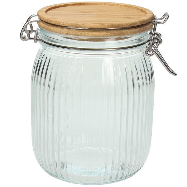 TRANSPARENT GLASS JAR 700CC WITH BAMBOO LID AND METAL CLIP Glass Φ0.10*0.14