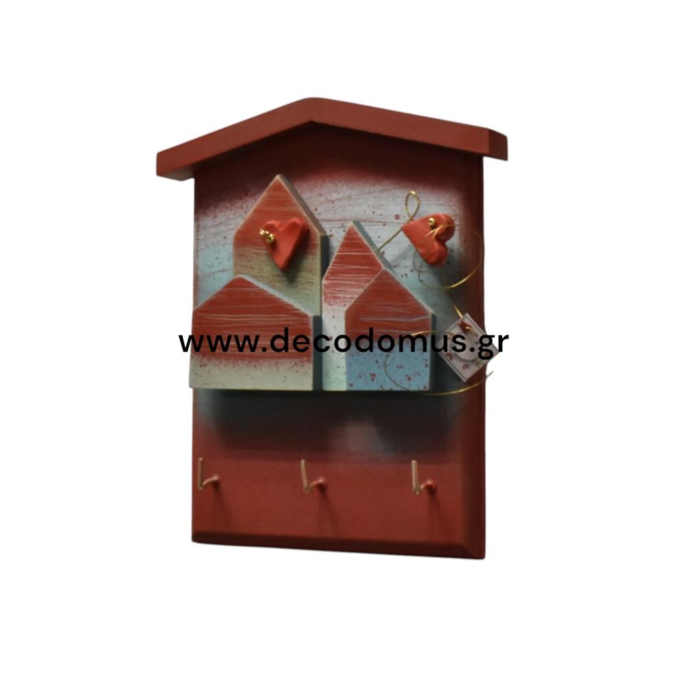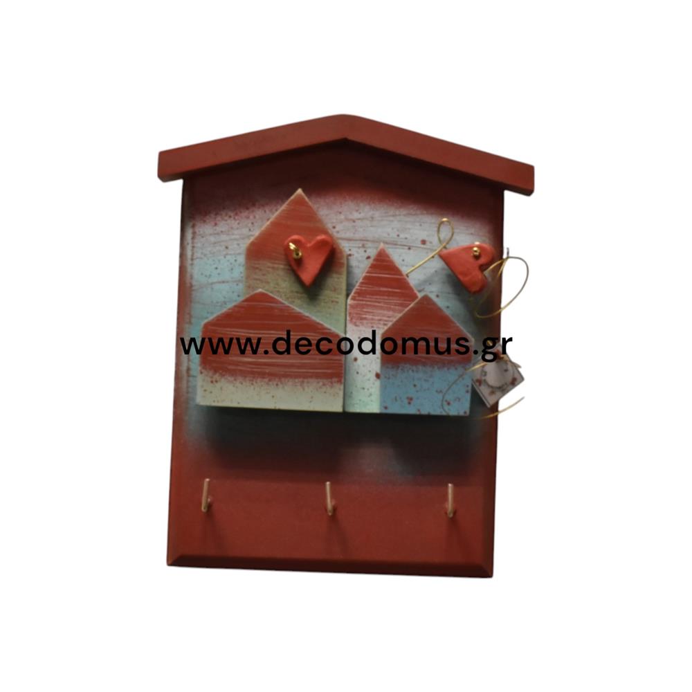 WOODEN KEY BOX WITH HOUSES AND HEARTS Metal L0.15W0.03H0.20