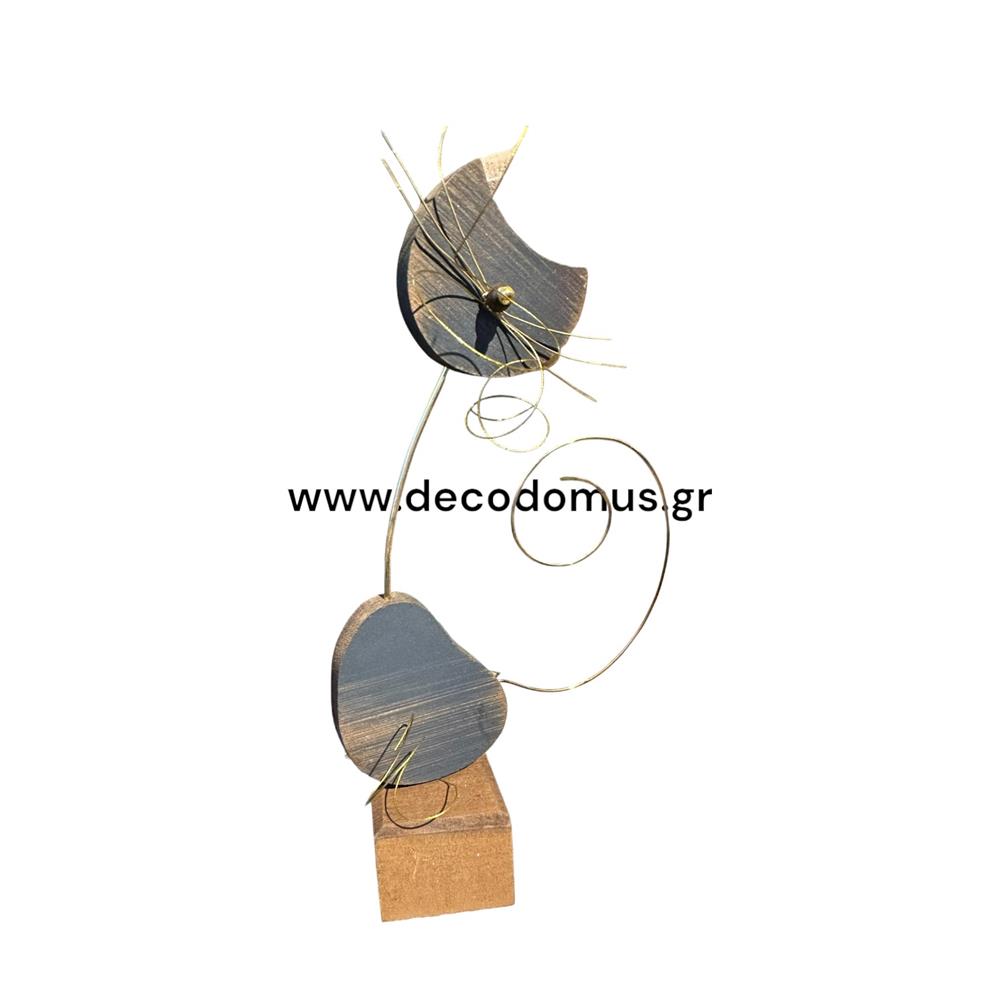 WOODEN CAT TALL GREY TABLETOP ON WOODEN BASE Metal L0.11W0.04H0.21