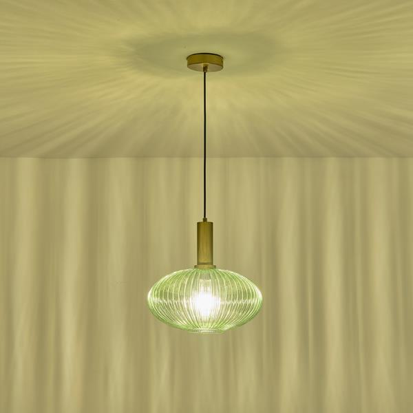 PENDANT LIGHT, RELIEF GLASS 1XΕ27 MAX 15W Φ300X171X1200mm GREEN ARTE ILLUMINA TOPAZ Metal Φ0.30*Η1.485