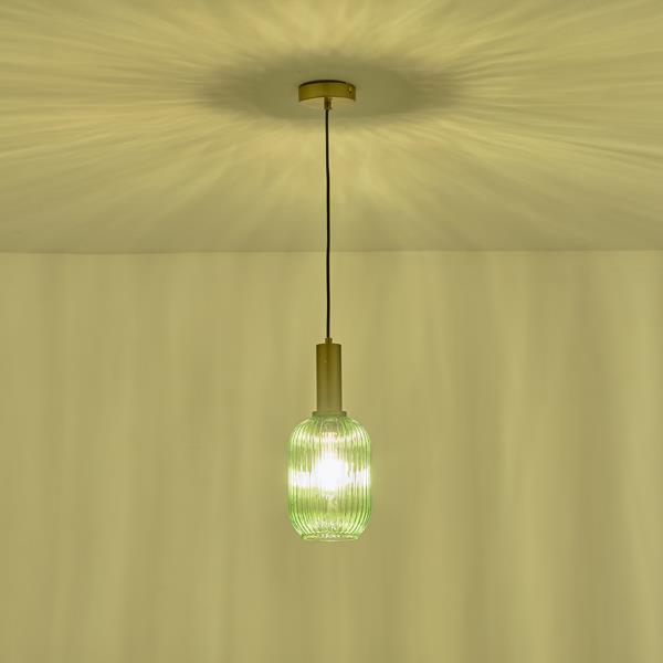 PENDANT LIGHTING EMBOSSED GLASS 1XΕ27 MAX 15W 130X200X1200mm GREEN ARTE ILLUMINA TOPAZ Metal Φ0.13*Η1.485