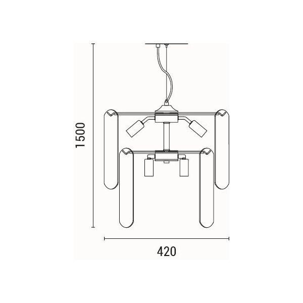 PENDANT LIGHT GLASS 8LIGHTS 8X14 MAX 8W Φ420X1500mm BLACK ARTE ILLUMINA MIRA Metal Φ0.42*Η1.50