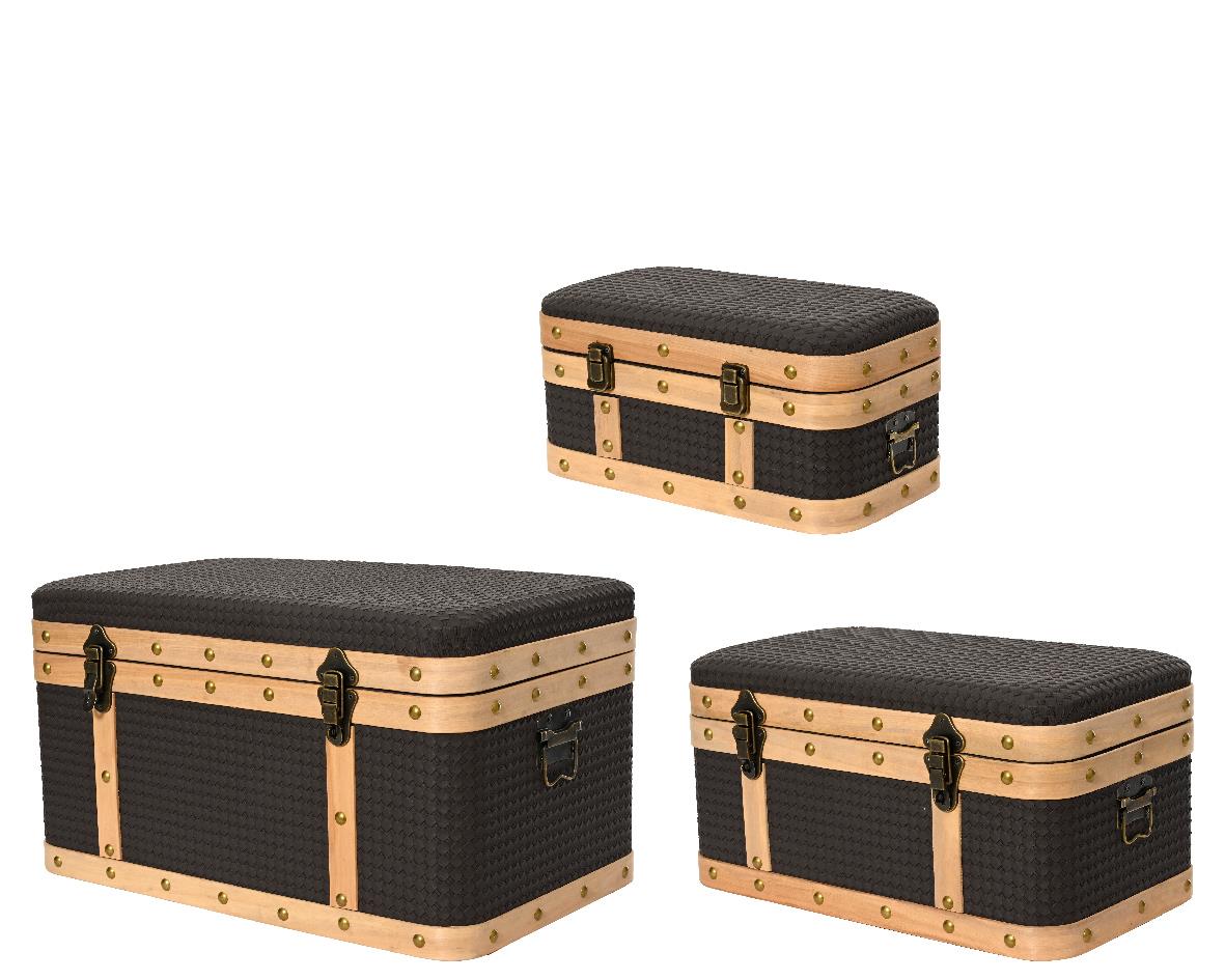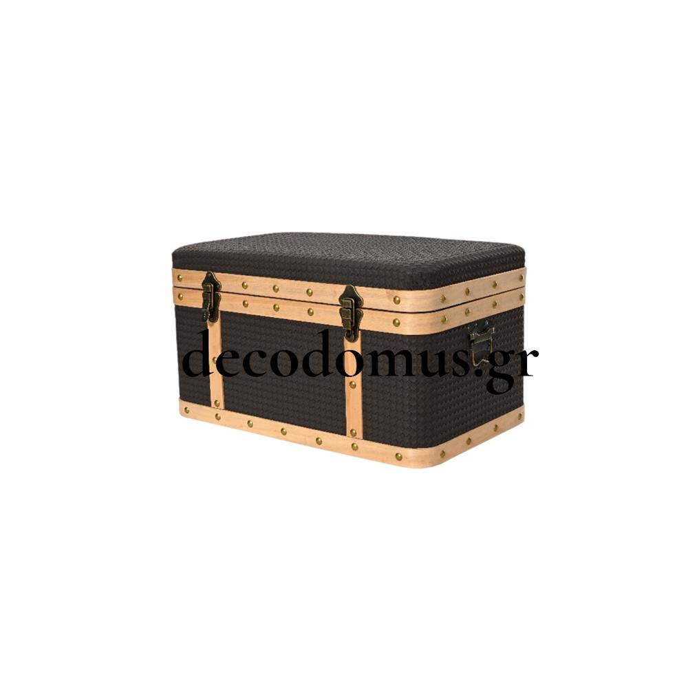 WOODEN TRUNK WITH BROWN FABRIC AND COPPER METAL ELEMENTS LARGE KAEMINGK Wood L0.56W0.39H0.33