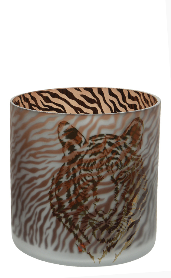 BROWN CANDLELIGHTHOLDER WITH TIGER Glass Φ15*15