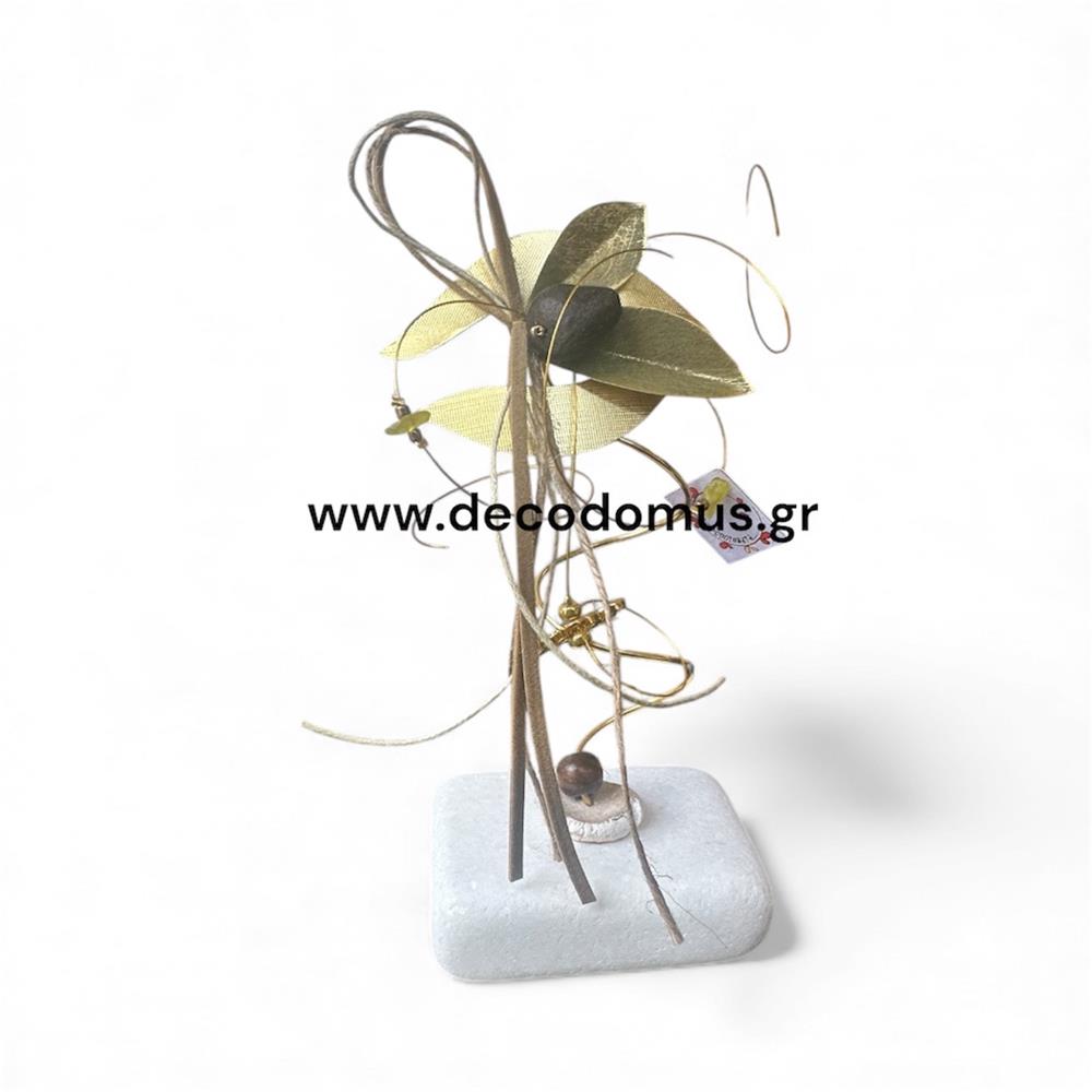 TALL CHARM WITH CERAMIC OLIVE AND METAL EYE ON A MARBLE BASE Metal L0.07W0.05H0.18