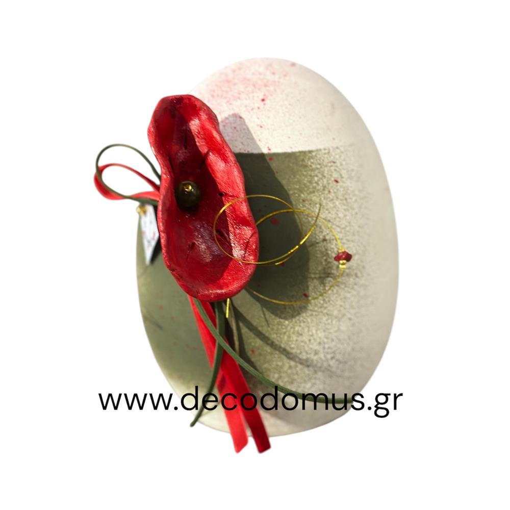 WHITE CERAMIC EGG WITH CERAMIC RED POPPY LARGE Ceramic Φ0.11*Η0.16