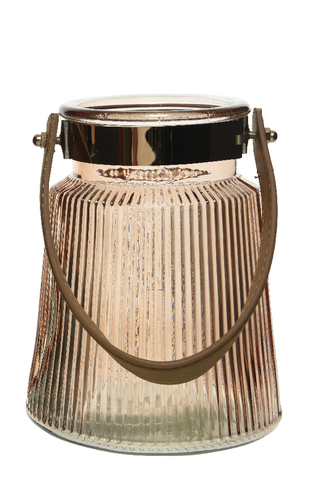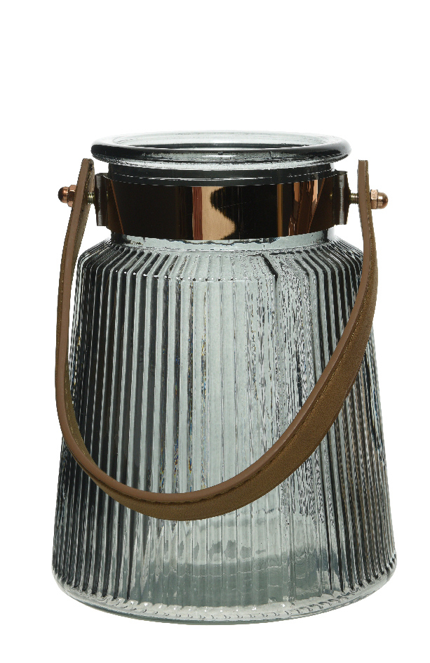 CANDLELIGHT HOLDER WITH LEATHER HANDLE SMALL Glass 14*14*17.7