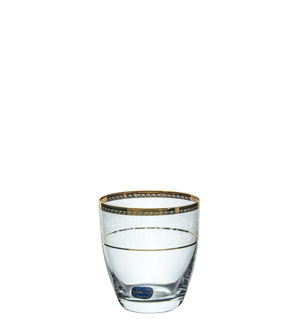 WHISKEY GLASS WITH GRAVEN FLOWER ELISABETH GOLD SET OF 6 PIECES 300ml Crystal Φ8.8*9Υ