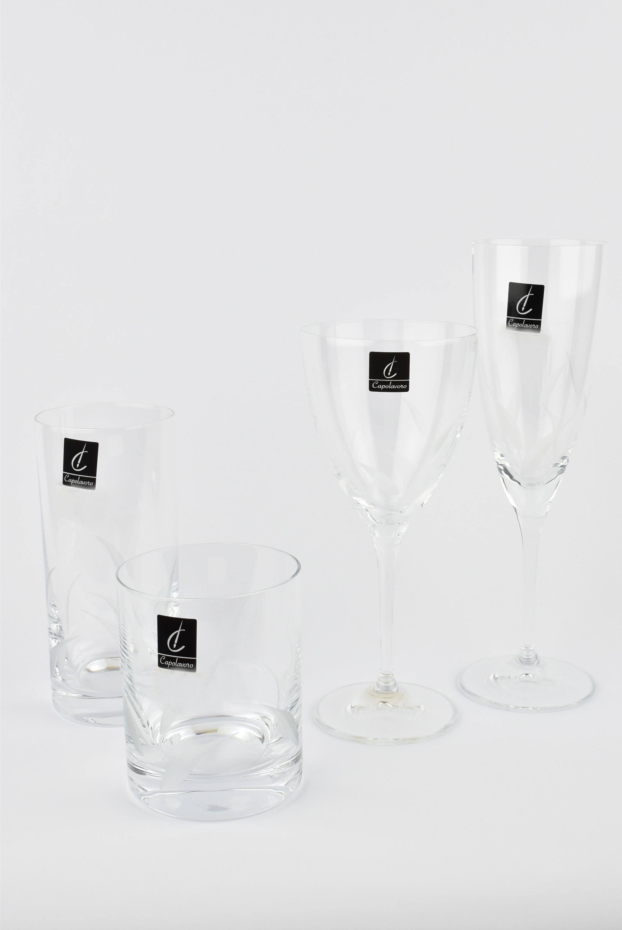 CHAMPAGNE GLASS WITH RELIEF OPALINE LEAVES KATE 220ML 6 PIECES Crystal Φ6.5*23